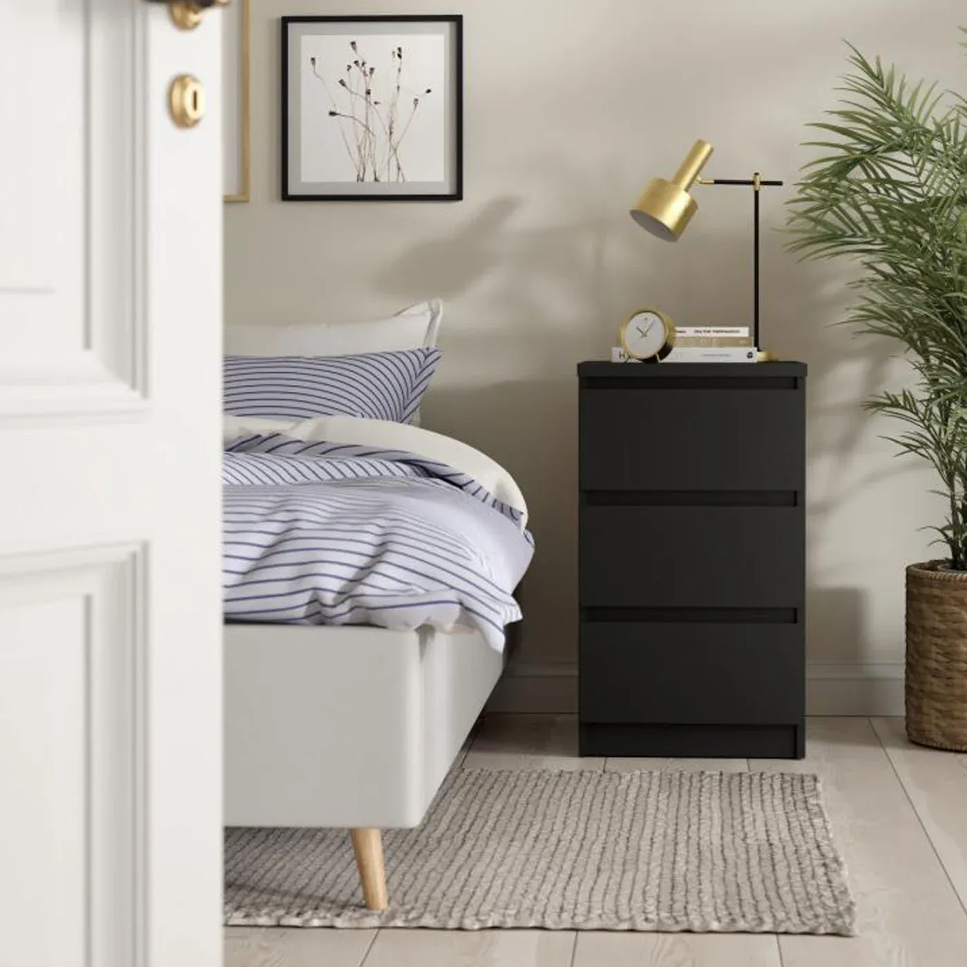 Cassettiera Nero frassinato con tre cassetti. E' disponibile anche in versione Nero opaco, Calcestruzzo e Bianco lucido,Bianco lucido