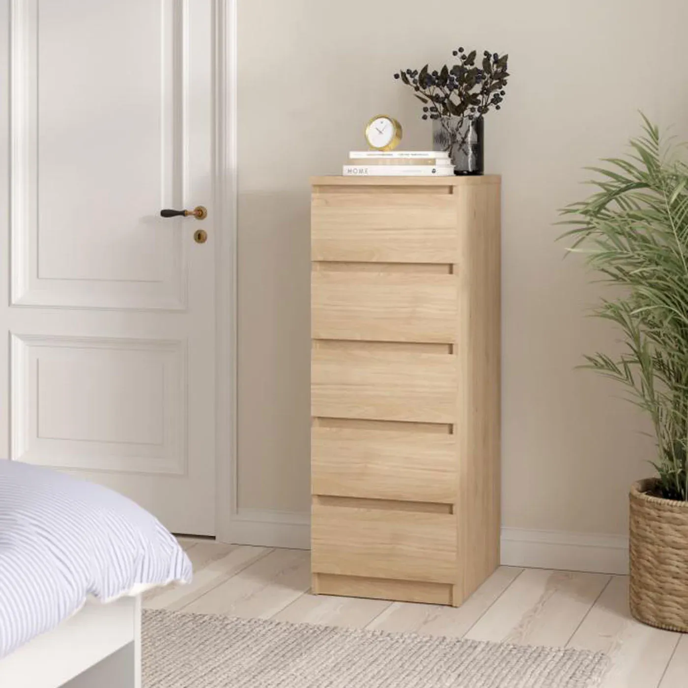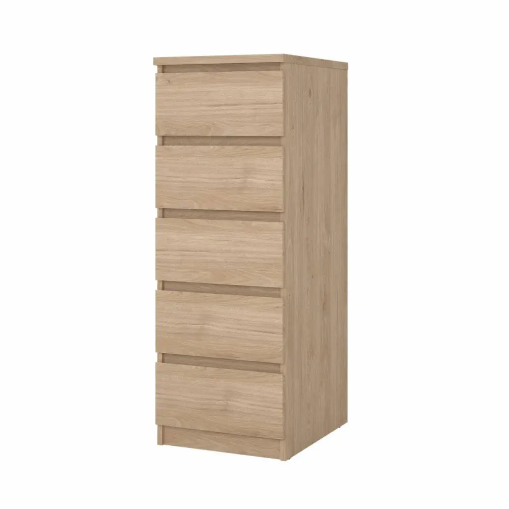 Cassettiera con cinque cassetti colore Rovere. E' disponibile anche in versione Nero opaco, Calcestruzzo e Bianco lucido, Bianco lucido