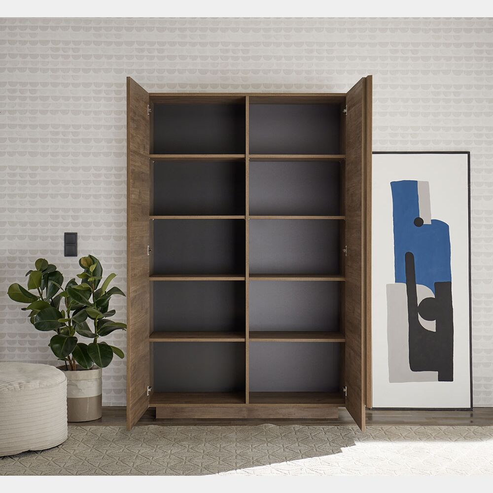 La sua finitura in Mercure, con le mille sfumature più chiare e scure, si fonde con le caratteristiche maniglie rettangolari che percorrono la maggior parte dell'altezza delle ante: l'effetto finale è una colonna di design che arreda ogni ambiente in cui viene posta con stile. La colonna è dotata di 8 ripiani interni.