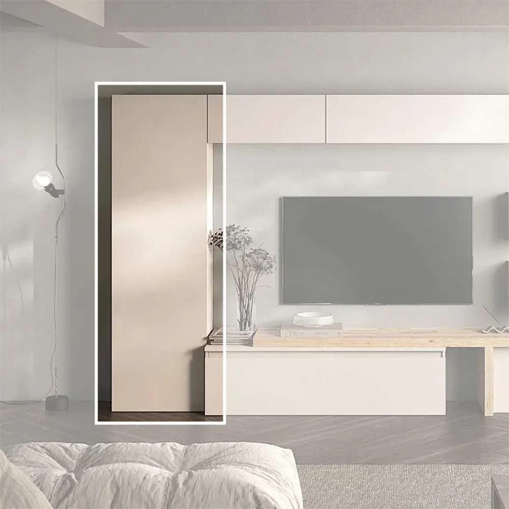 La tinta Cashmere, calda tonalità di tendenza, assicura all'ambiente armonia e eleganza, completando l'arredo con gusto. L'ampio campionario di finiture disponibile consente di personalizzare la colonna per adattarla al meglio al proprio living.