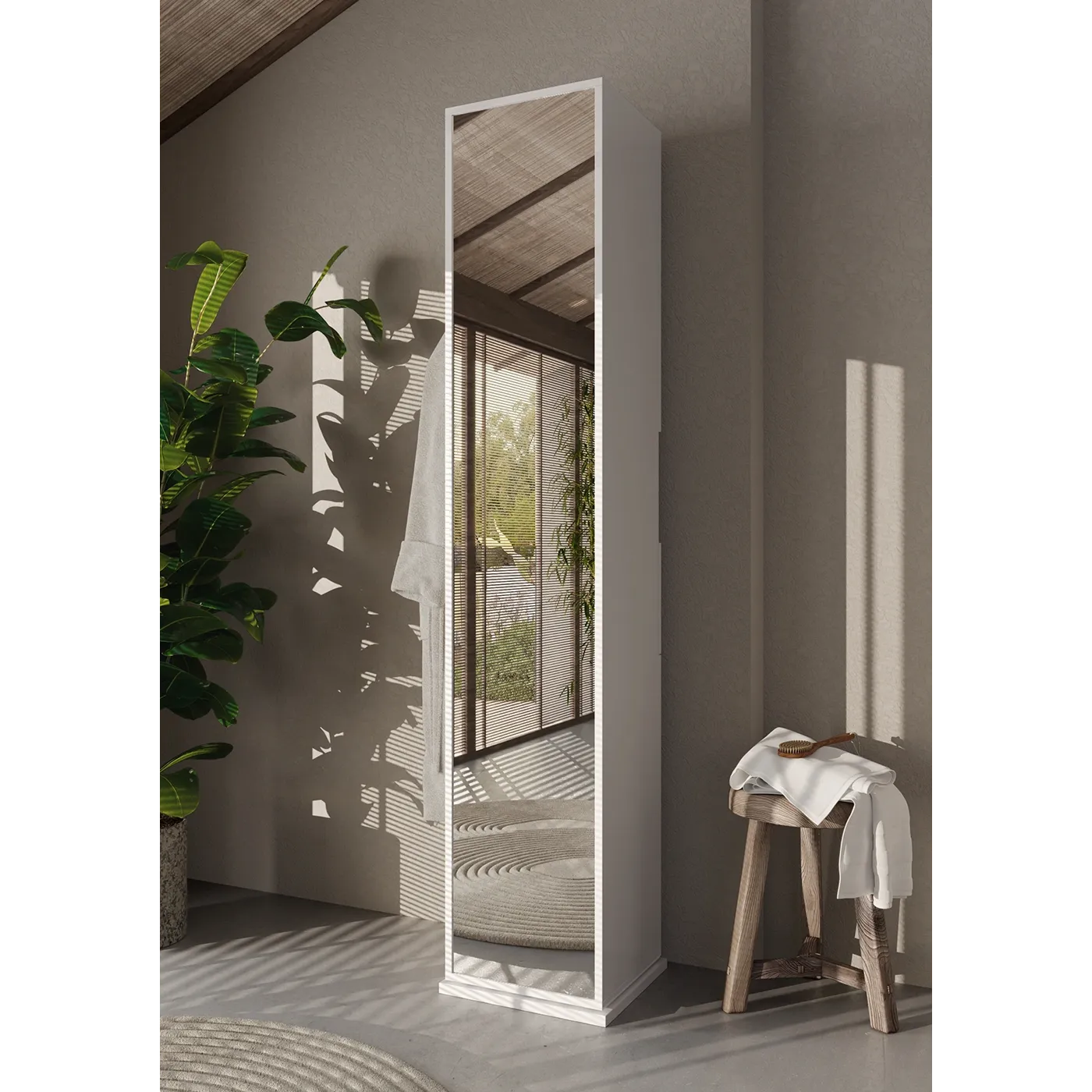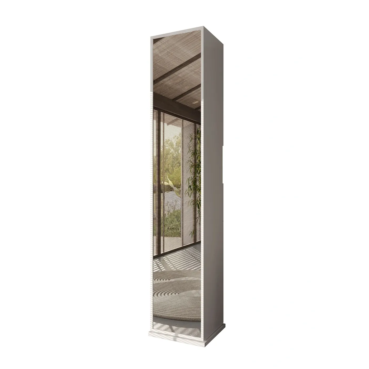 Particolarità del prodotto è la possibilità di poter girare grazie ad un meccanismo posto alla base che permette di vedere l'altro lato del mobile, ovvero quello con uno specchio che lo ricopre in altezza quasi interamente.