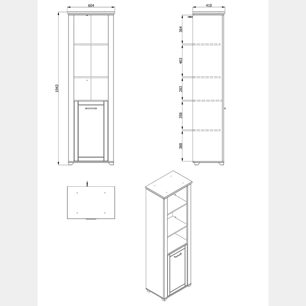 • Totali: L.60,4 H.194,3 P.41 cm
