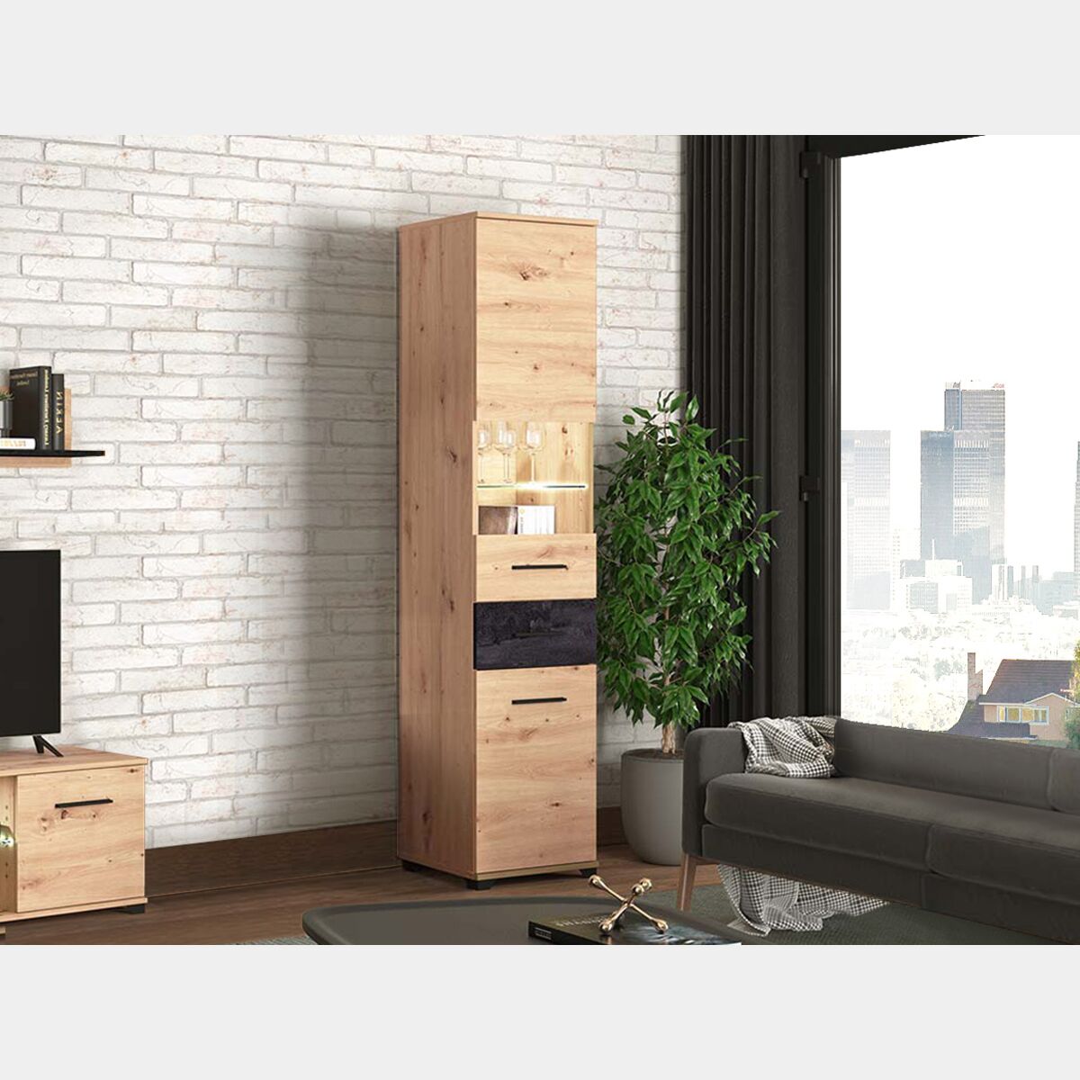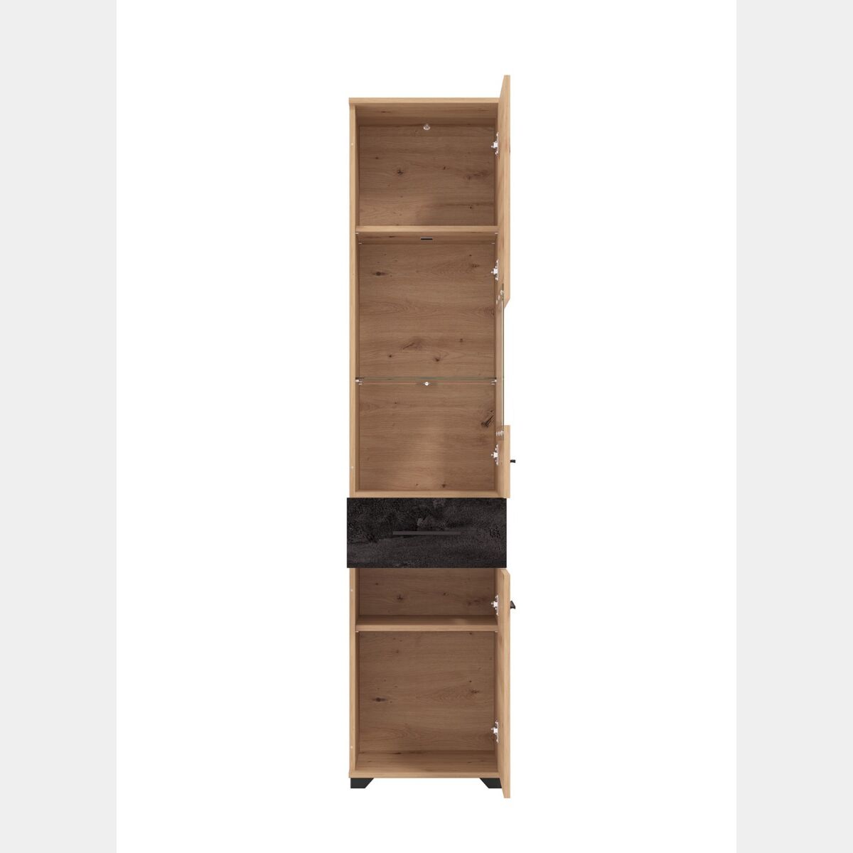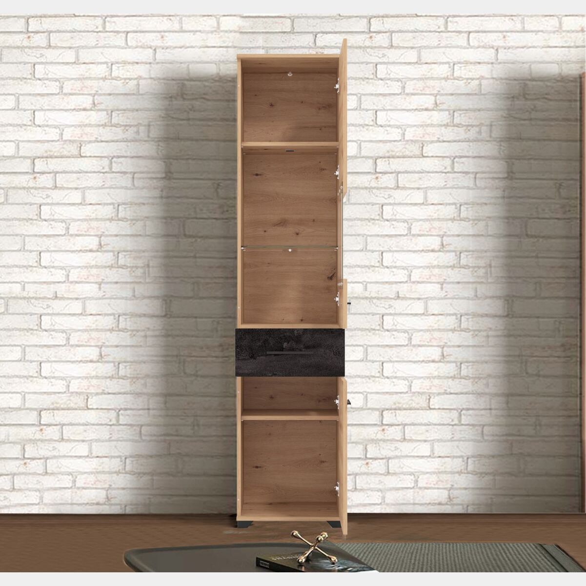 Colonna vetrina 2 ante 1 cassetto, finitura Rovere e Carbone