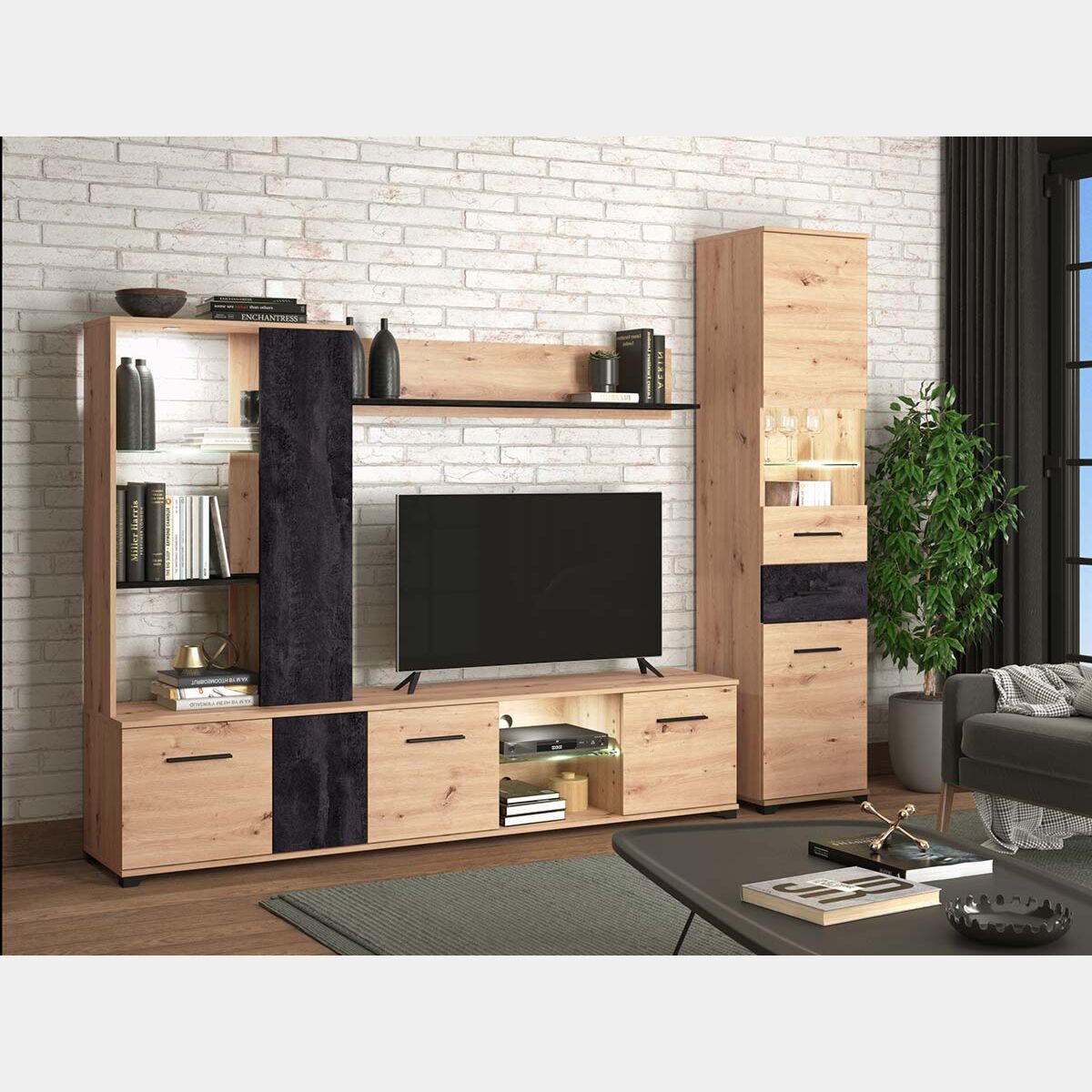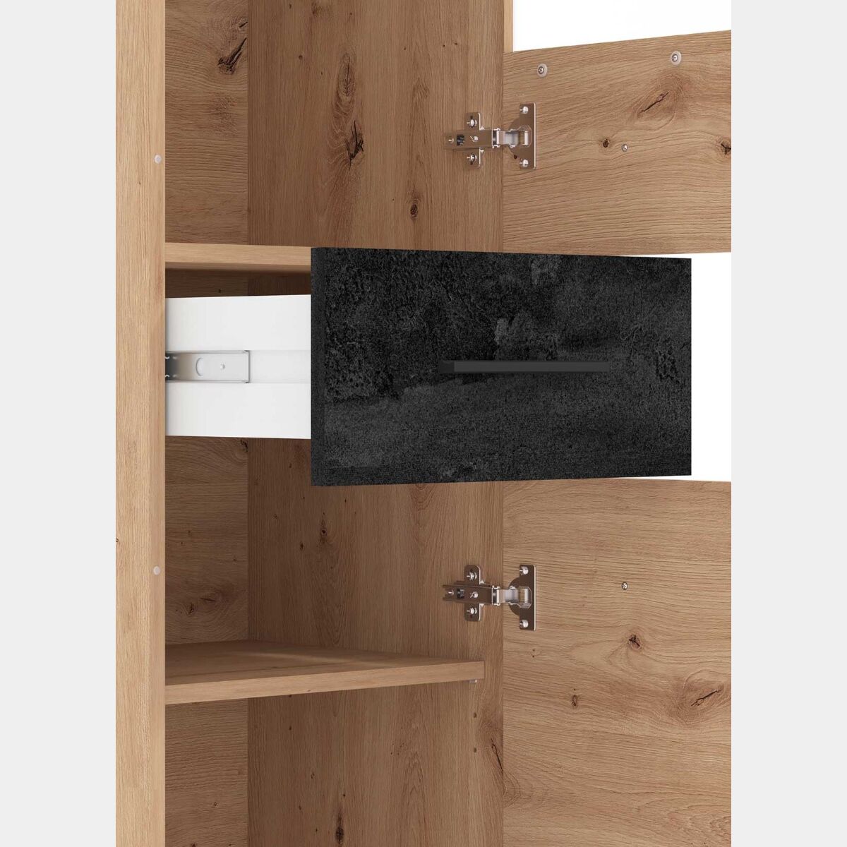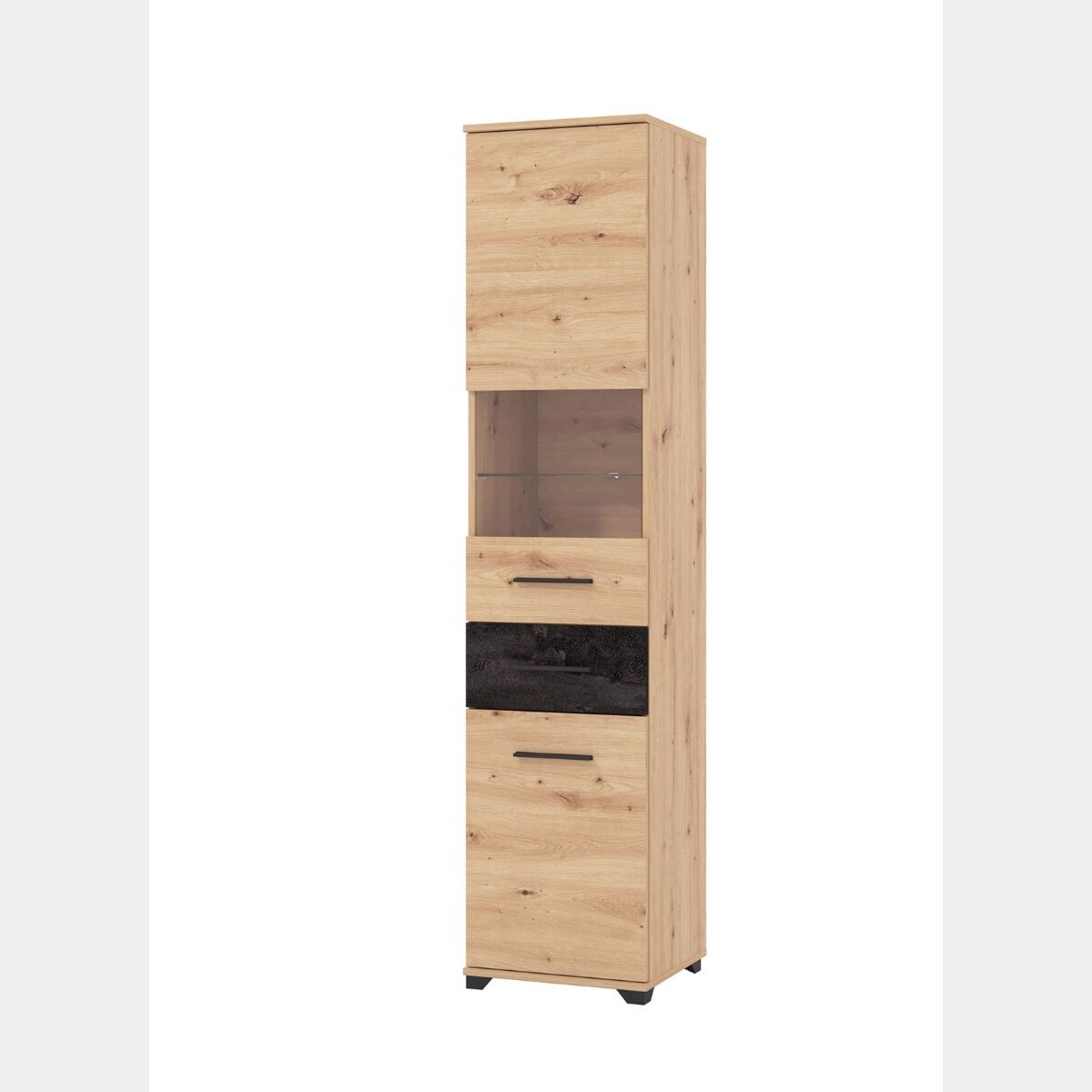 Colonna vetrina 2 ante 1 cassetto, finitura Rovere e Carbone