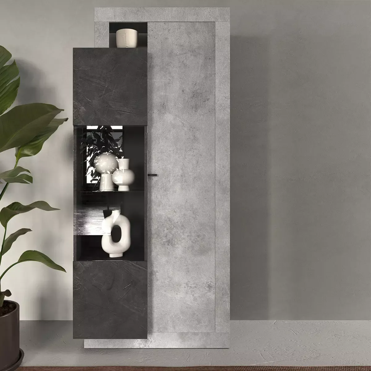 Colonna vetrina a 2 ante, finitura Piombo e Cemento