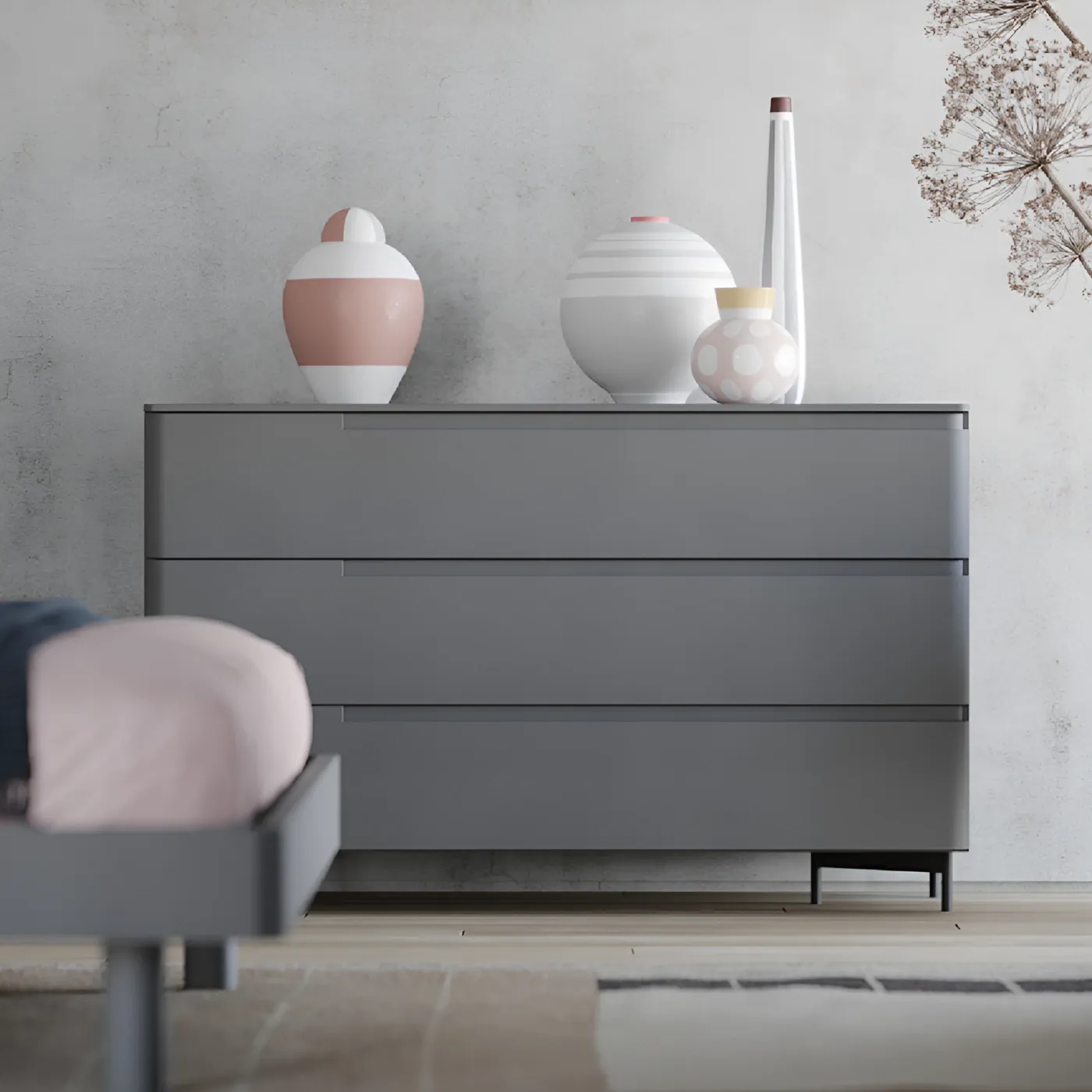 Comò 3 cassetti con piedini, Laccato opaco Piombo