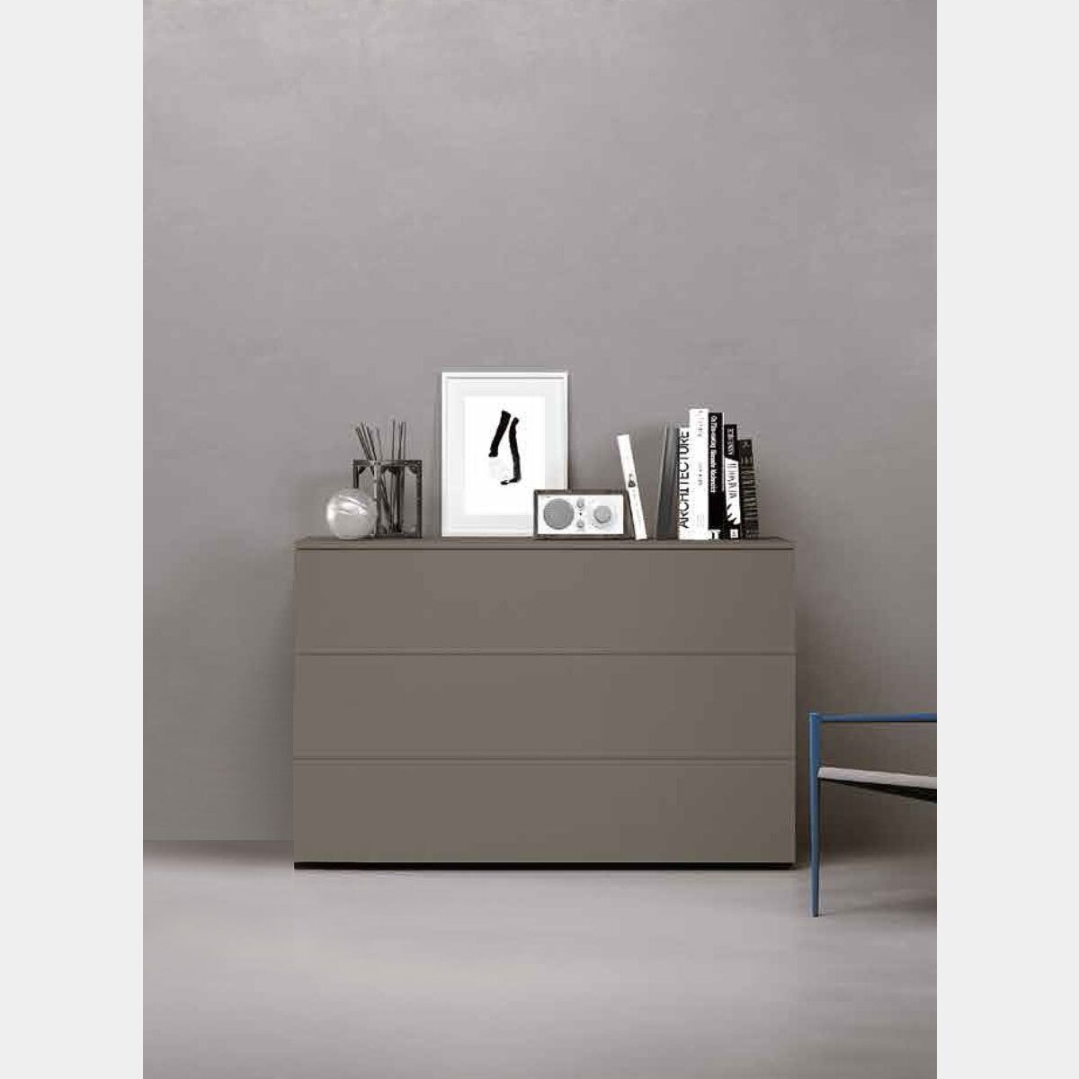 Comò moderno Grigio Cenere. Comò a 3 cassetti con guide in legno massiccio di ramino, in metallo con ruote metalliche con meccanismo di chiusura a molla di richiamo e ammortizzatore. Il comò della collezione island ha le maniglie a presa laterala con gola e dotato di piedini registrabili e anti ribaltamento.