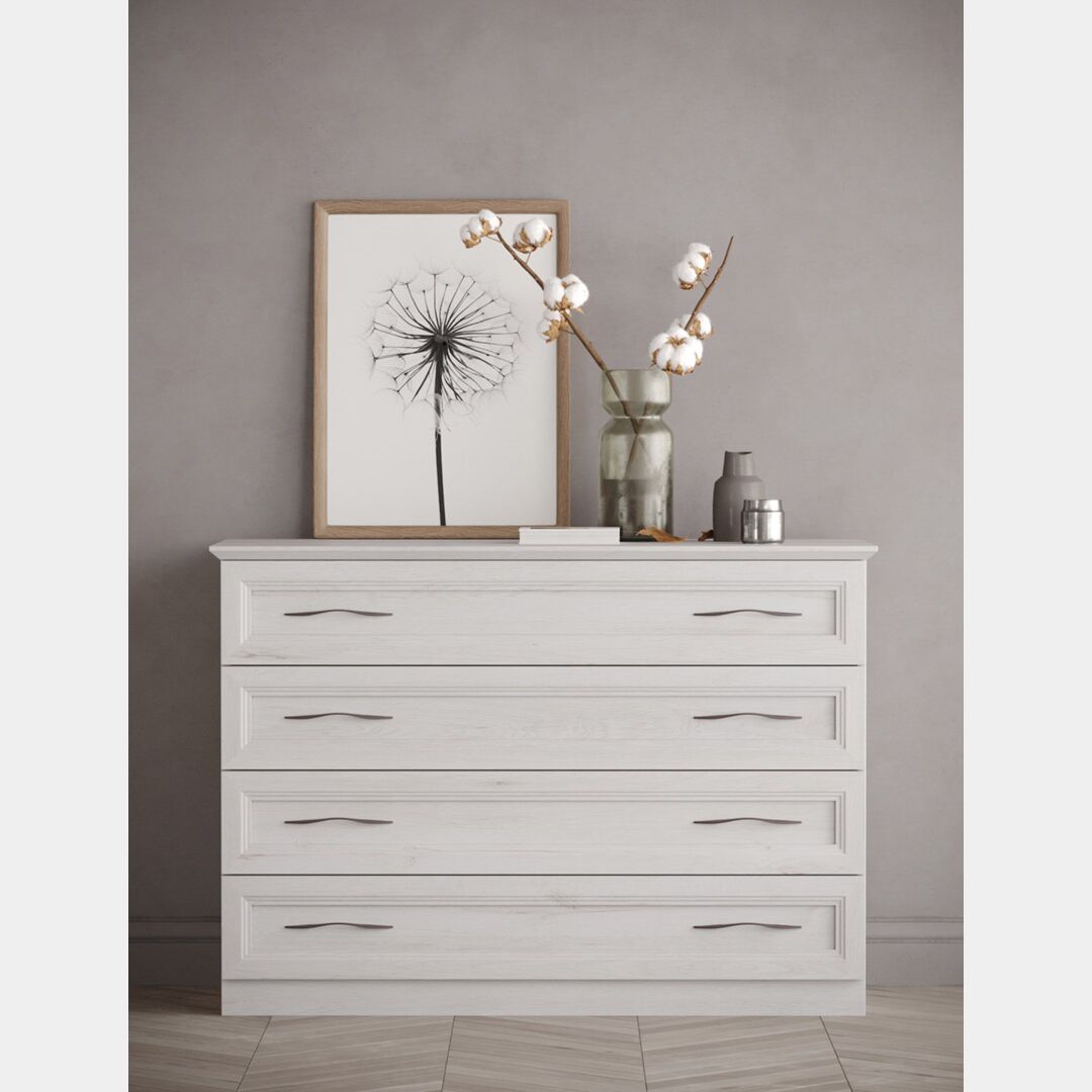 ll comò della Collezione Orizzonte è dotato di quattro cassetti con guide ammortizzate, per poter riporre con ordine i propri indumenti. E' una soluzione ampia e capiente, ideale per ottimizzare al meglio gli spazi della camera da letto.