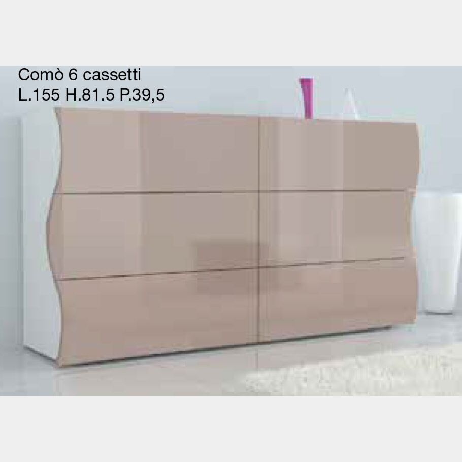 Comò 6 cassetti laccato bianco Cappuccino, linea onda