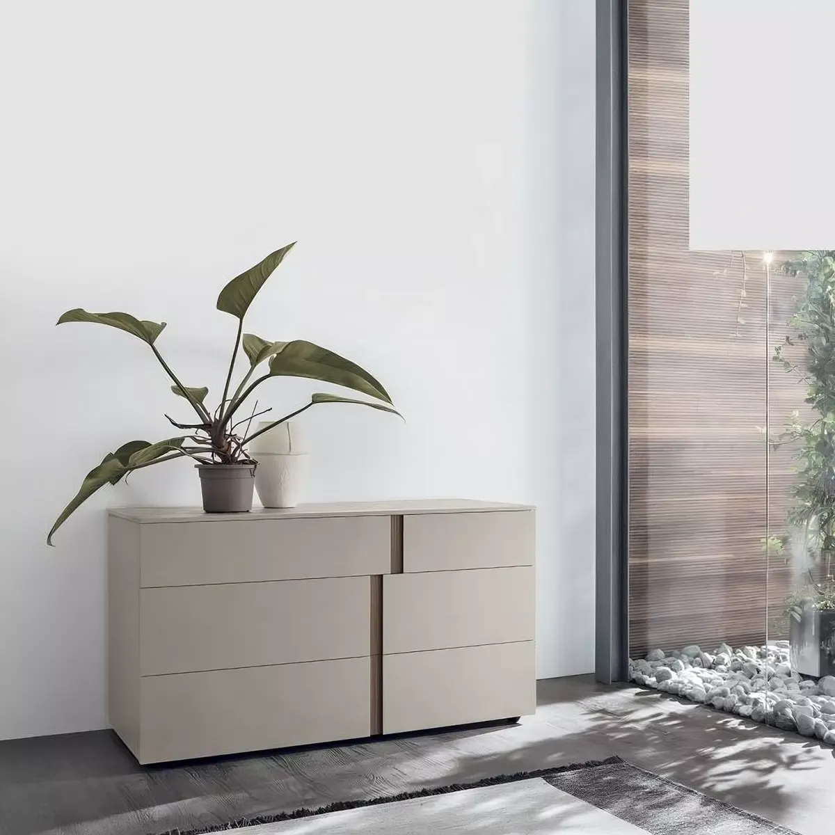 Ideale per camere da letto moderno e minimal il comò personalizza l'ambiente con gusto, assicurando al contempo la massima funzionalità, grazie ai tre capienti cassetti.