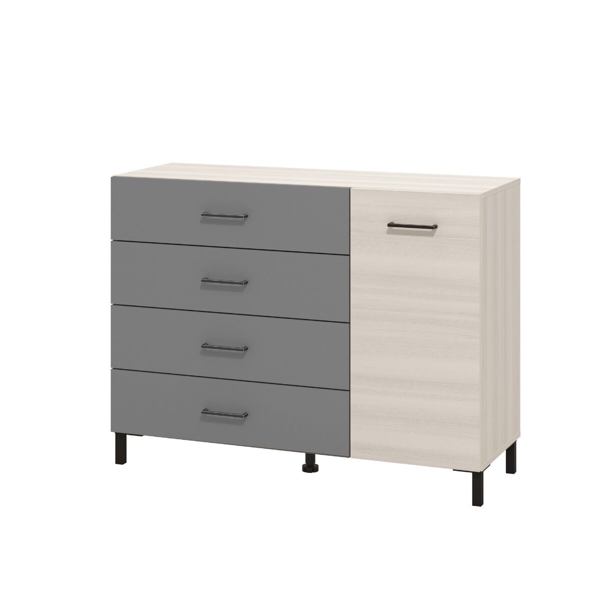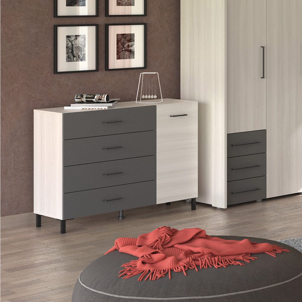 Comò Bianco frassino e Grigio, 4 cassetti 1 anta