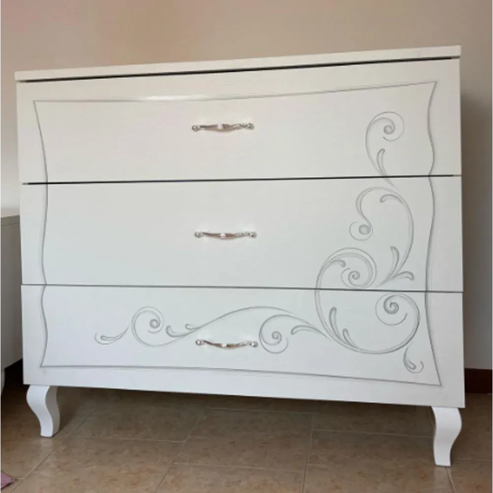 Comò Bianco opaco con serigrafia, 3 cassetti, Made in Italy