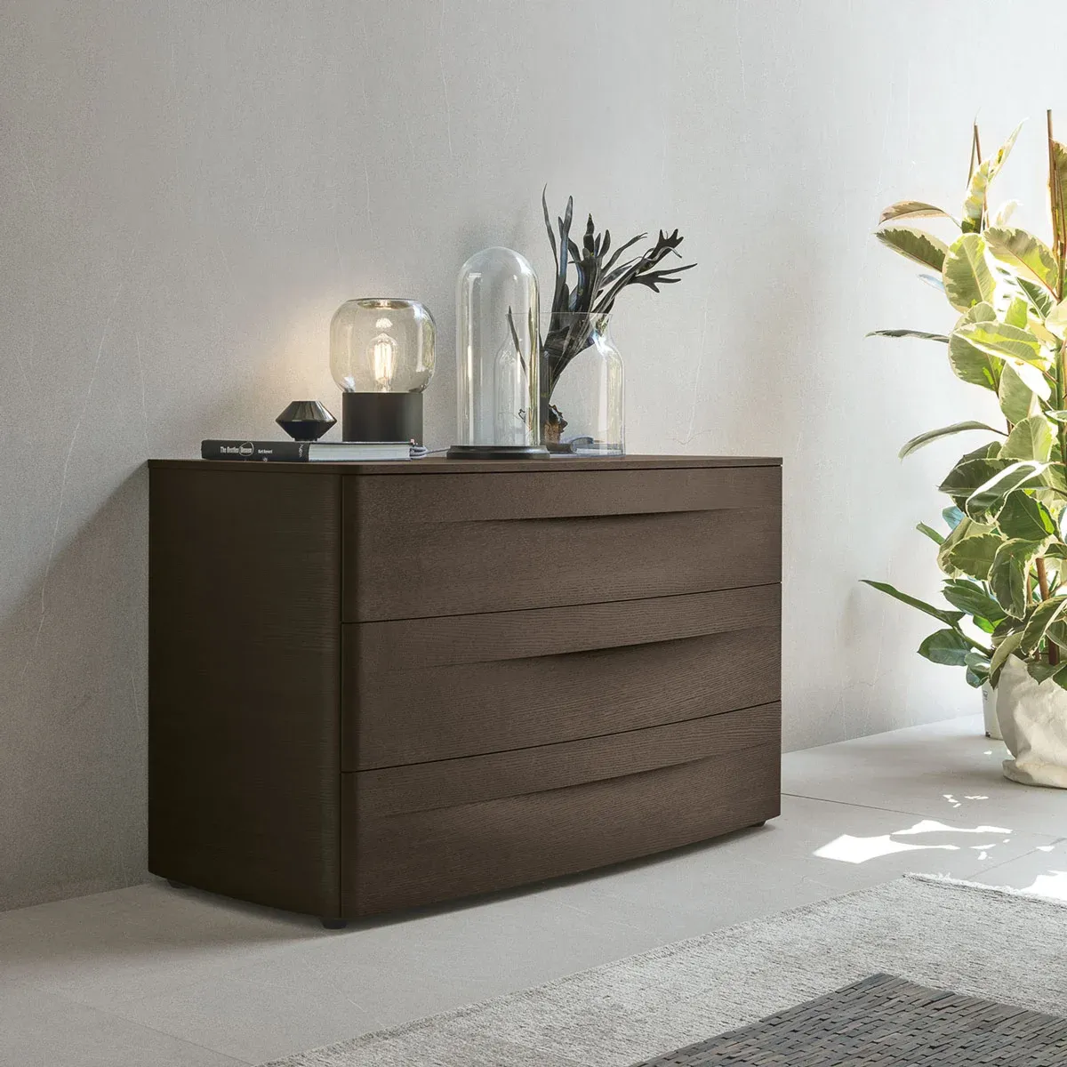 La finitura Rovere moka dà al comò un aspetto sofisticato: le venature scure e intense fanno risaltare la lavorazione della maniglia integrata. La scelta ideale per chi cerca un arredo di classe.