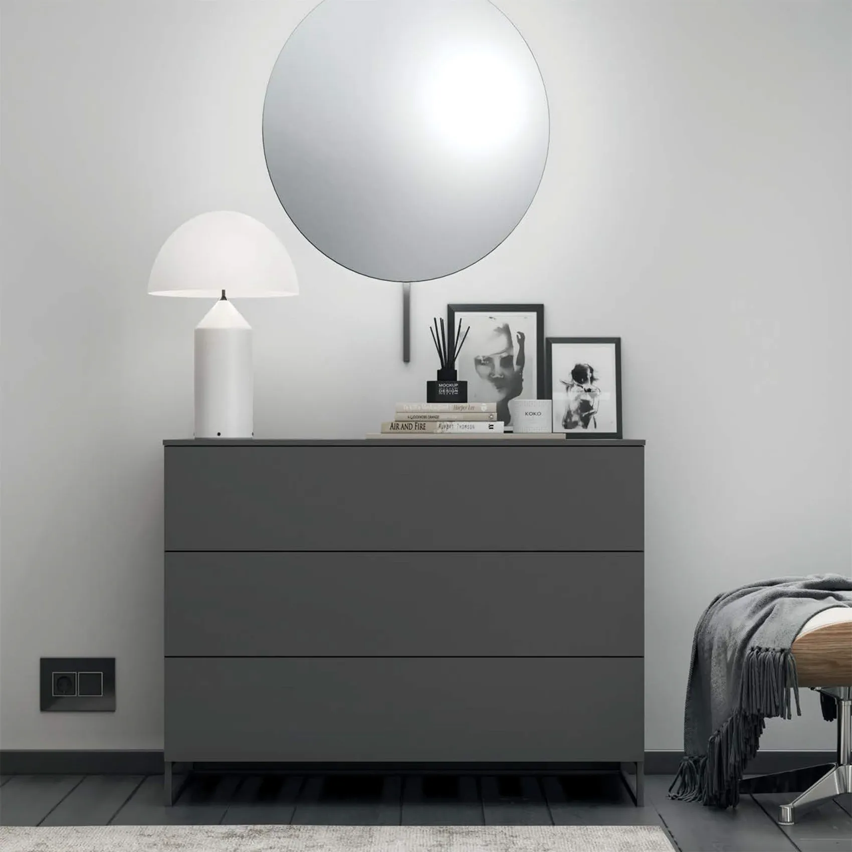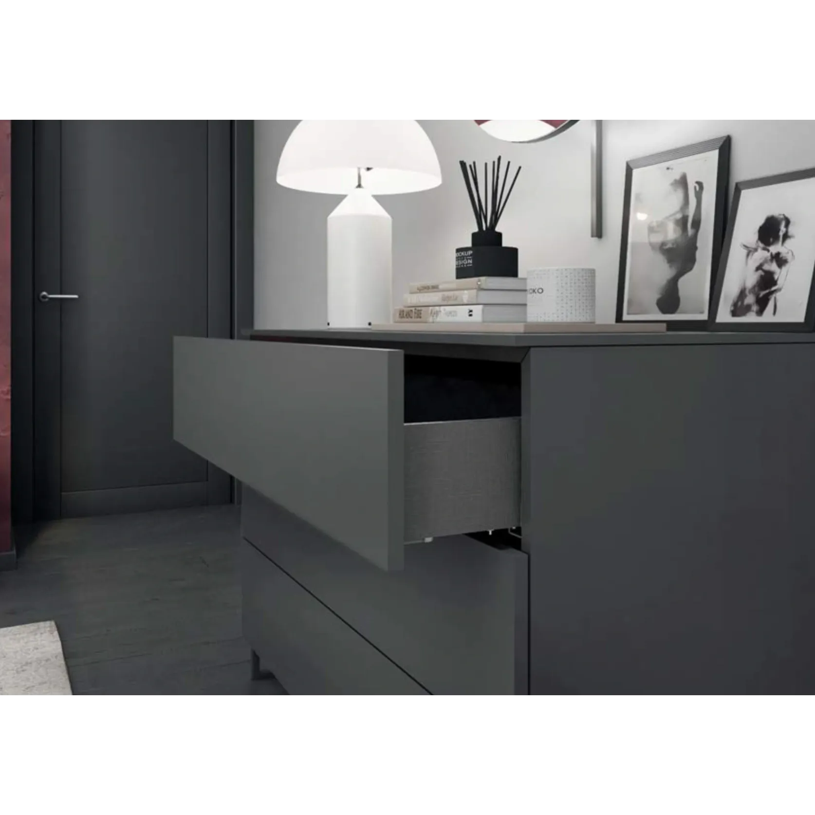 Comò con supporto a 3 cassetti, finitura Antracite