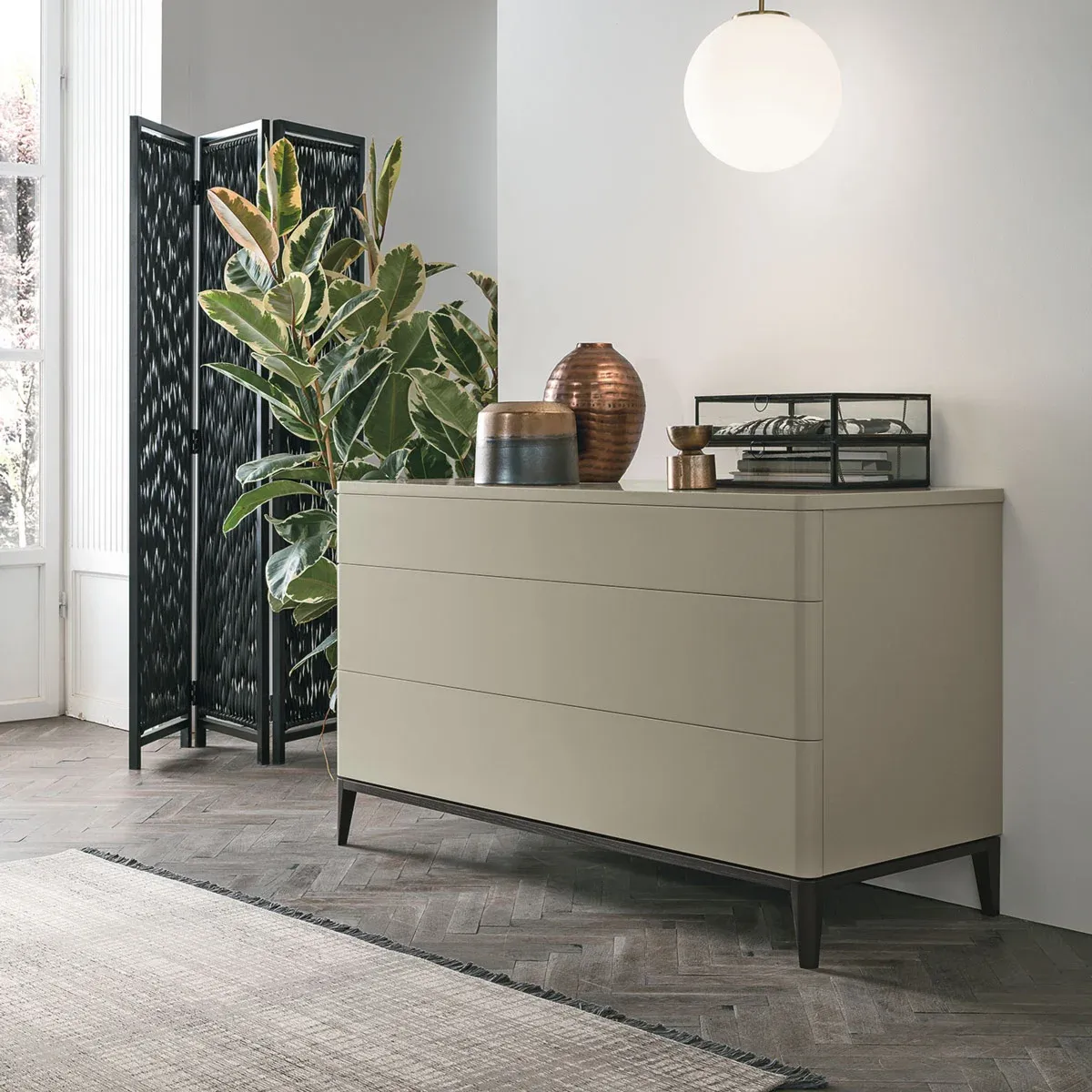 L'ampia gamma di finiture assicura una totale personalizzazione del comò Dolcevita, offrendo il perfetto complemento d'arredo ad ognuno.