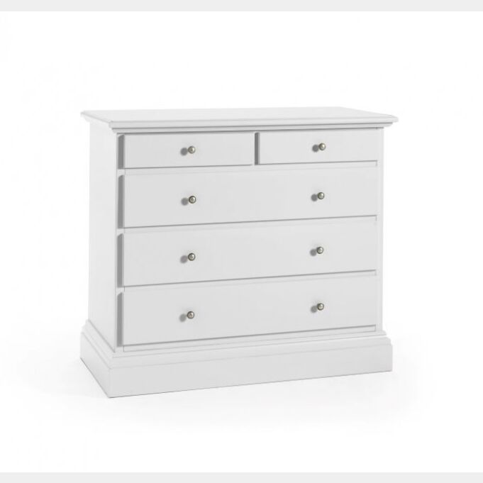 Cassettiera in legno, laccato bianco, decisamente utile grazie ai 5 ampi cassetti. Un mobile decisamente bello per la sua linea classicamente asciutta e per la raffinata e accurata laccatura.
