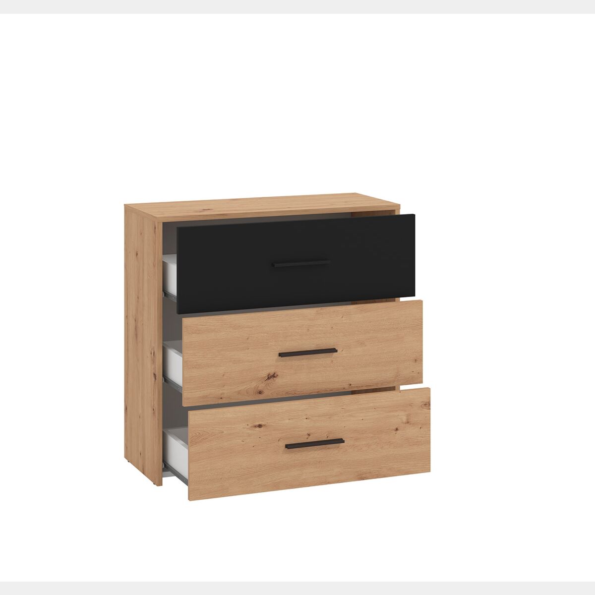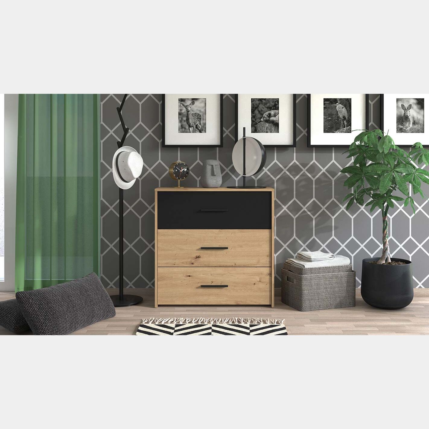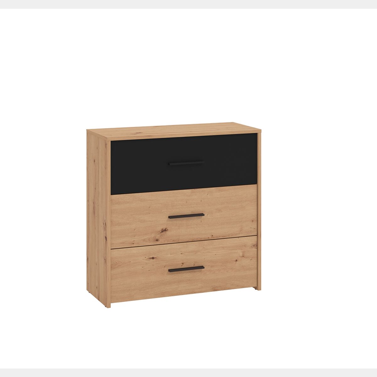 Comò industry 3 cassetti, finitura Rovere e Nero