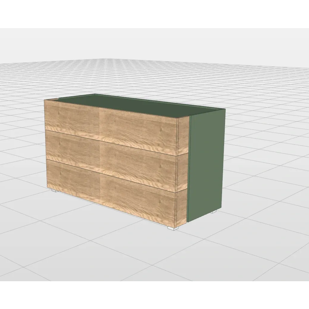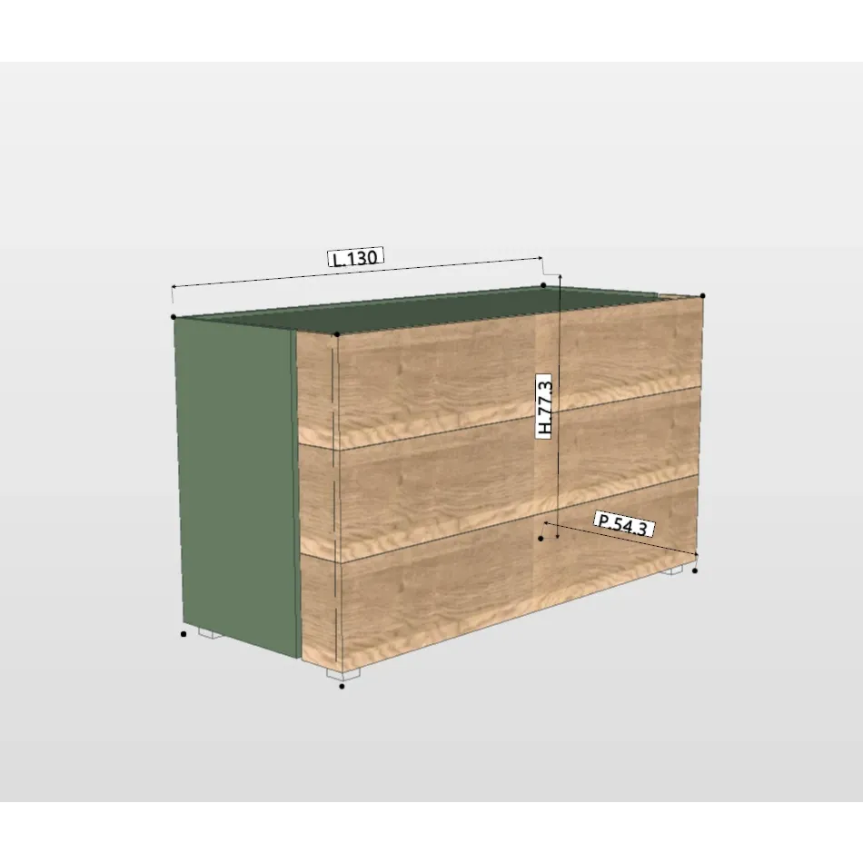 E poi c'è il lato a sorpresa: il fianco del comò è di un colore Garda laccato, un po' militare o bosco. Questo verde crea un contrasto inaspettato e super cool con il legno chiaro, dando al mobile un'aria contemporanea e un po' "bold".