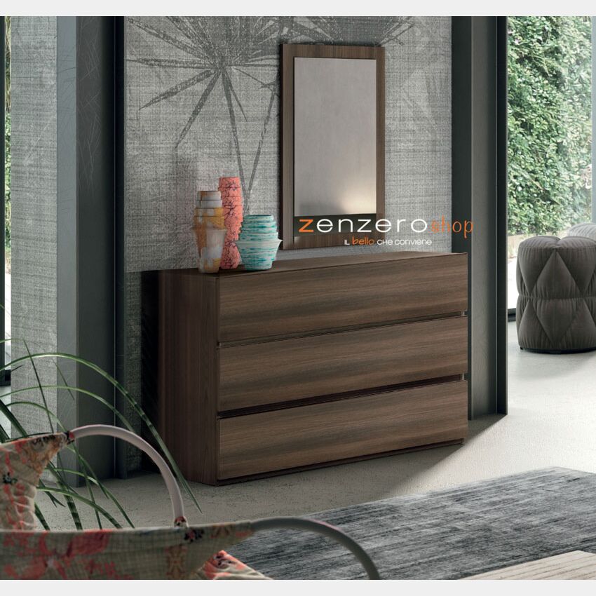 Comò largo moderno con 3 cassetti di alta qualità in finitura Quercia brown