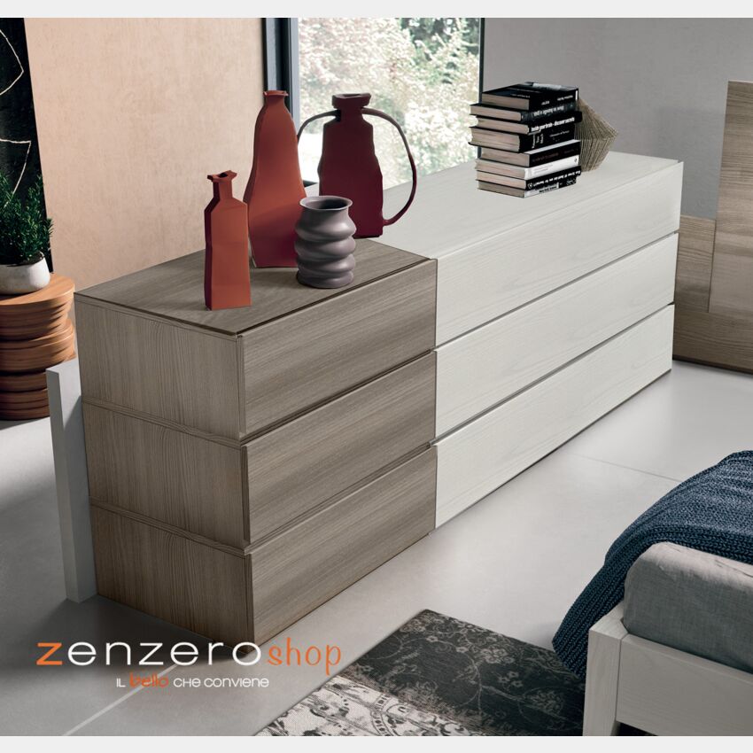 Comò maxi Bicolor con 6 cassetti di alta qualità in Frassinato bianco e Olmo