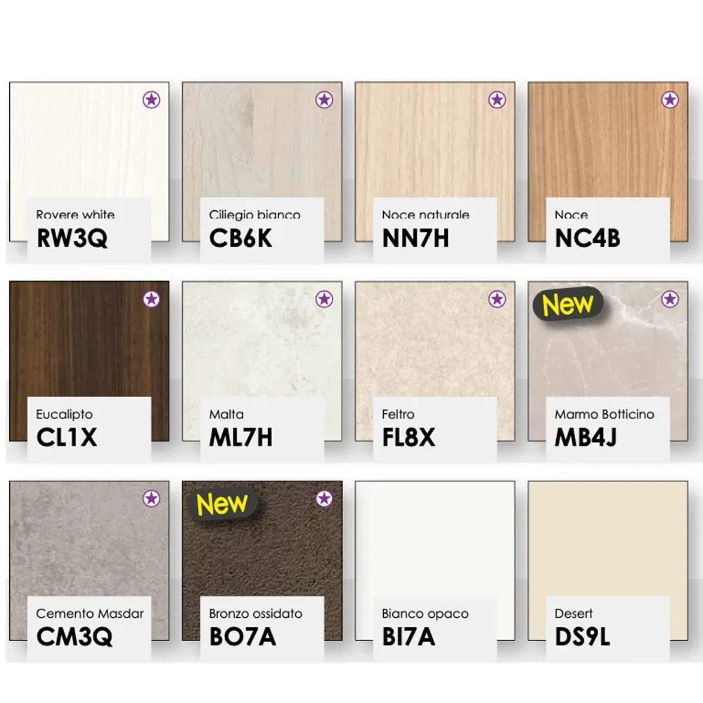La finitura proposta per il comò è Ciliegio bianco per la struttura, piedini e frontali sono Canapa. Grazie ad un'ampia gamma di colori è possibile personalizzare il comò per adattarlo al meglio al proprio stile ed alla propria camera da letto.
