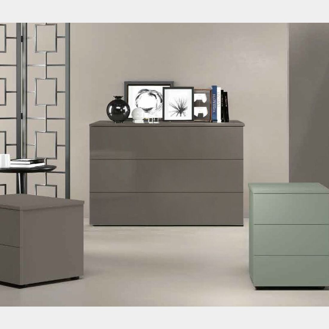 Comò moderno a 3 cassetti in finitura Grigio Cenere