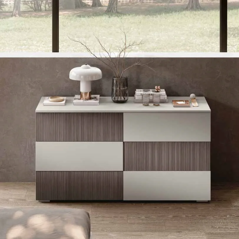 Comò moderno cannettato Grigio e Grigio seta a 6 cassetti