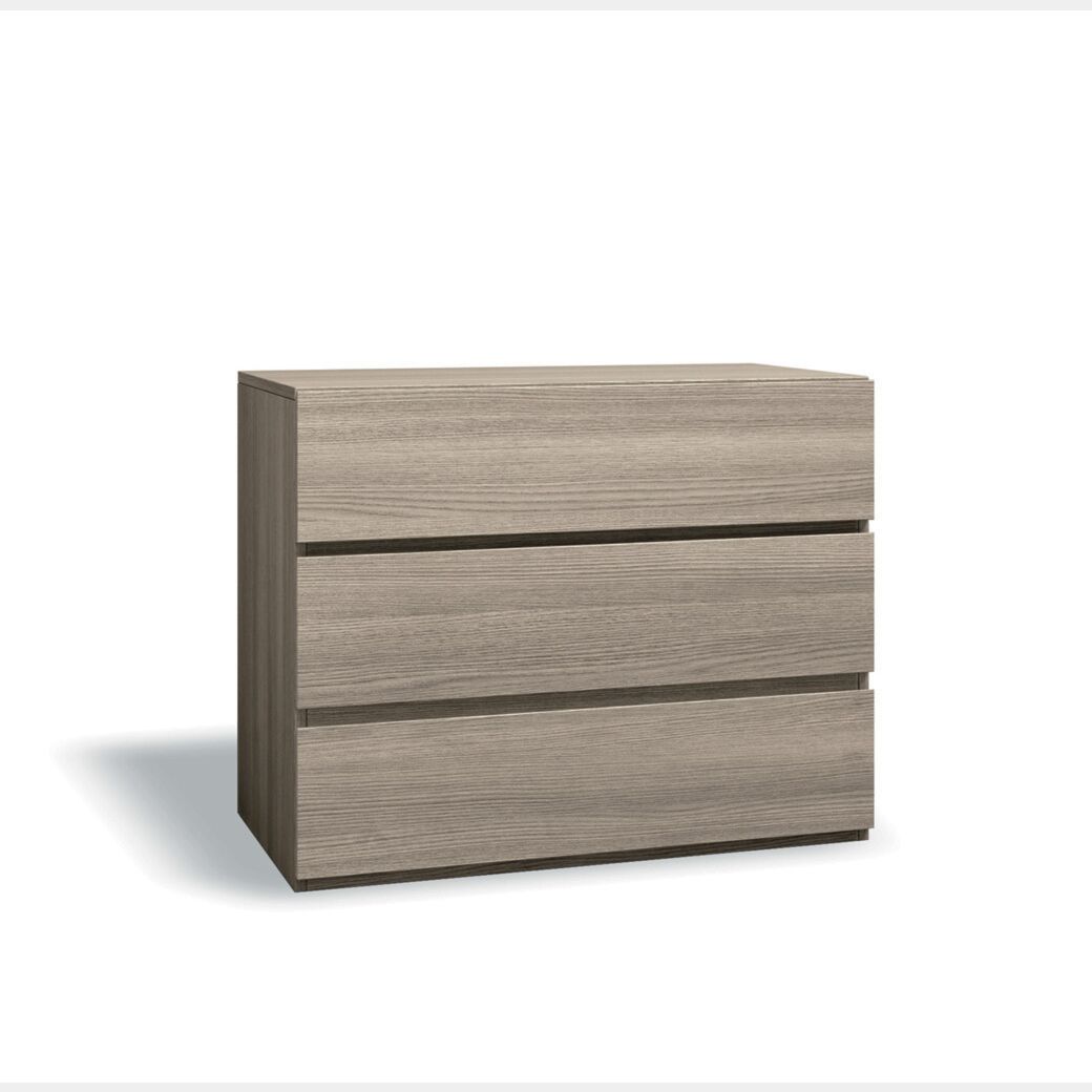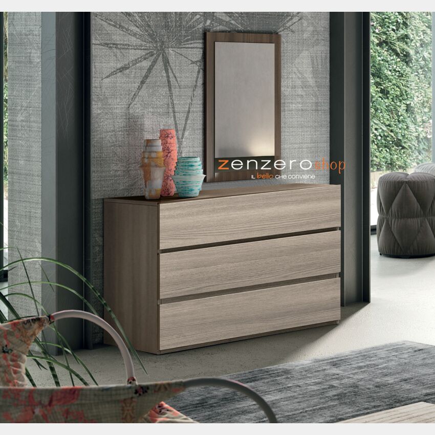 La nuova collezione Cosmo propone estetiche innovative e funzionali. Il comò moderno presenta un design moderno e raffinato, dotato di 3 capienti cassetti fornisce un ampio spazio di appoggio, è previsto il sistema di chiusura rallentata.