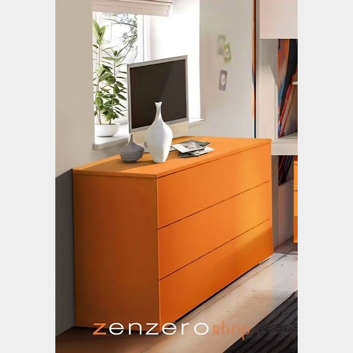 Comò moderno per camerette per ragazzi, finitura Arancio