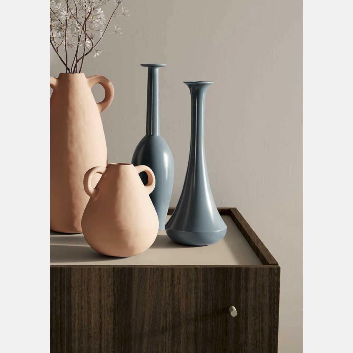 La finitura proposta per struttura e frontali è Eucalipto, il top invece è in Canapa. Grazie ad un'ampia gamma di finiture è possibile personalizzare il comò adattandolo ad ogni ambiente e stile.