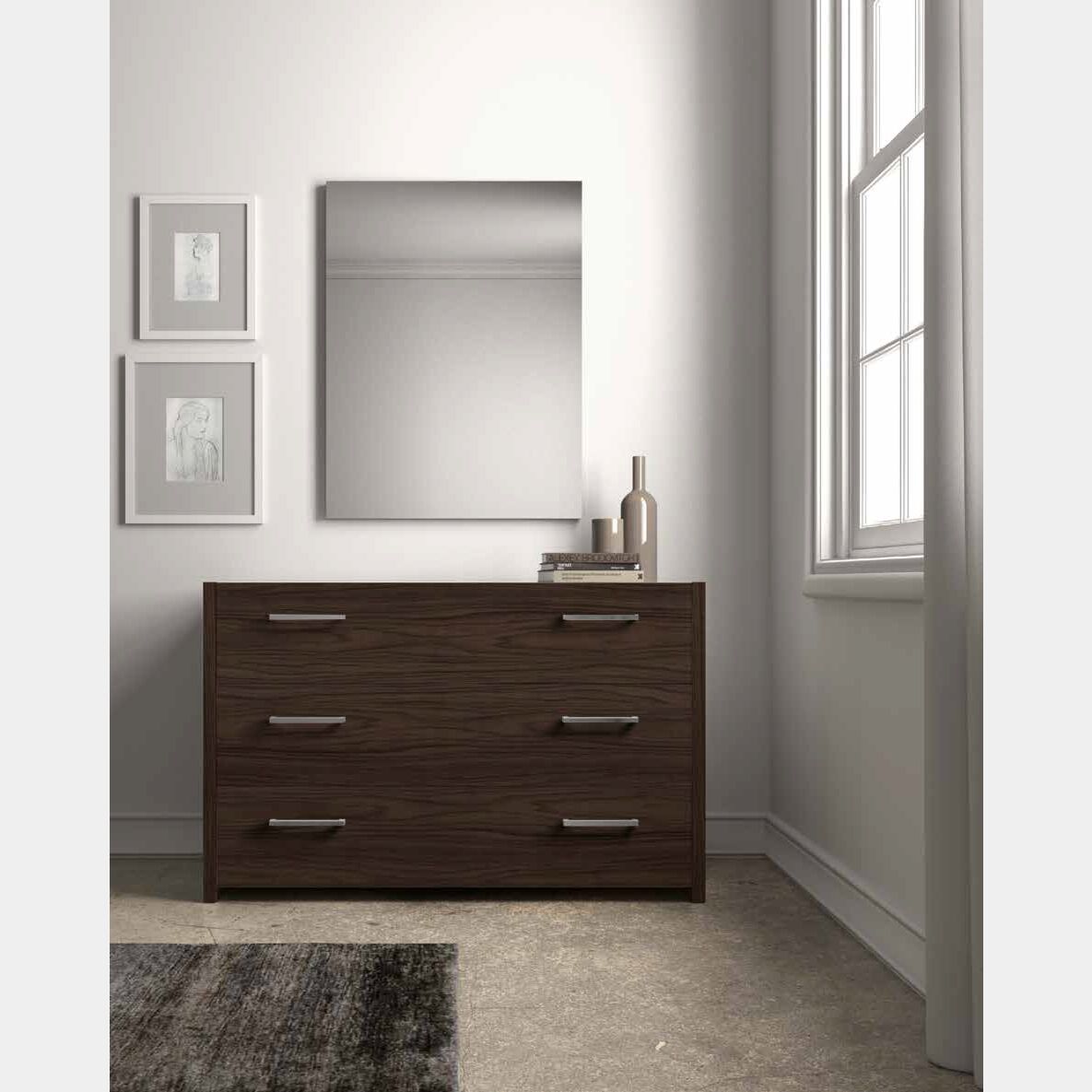 La finitura proposta in Noce moro, con l'effetto venato del legno, dona carattere all'ambiente assicurando uno stile tradizionale e di grande impatto. Grazie un ampio campionario è possibile personalizzare le finiture per adattare il comò alla propria zona notte.