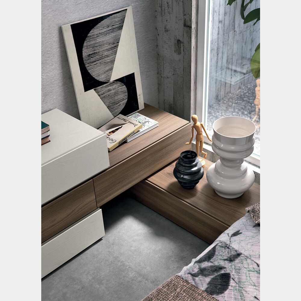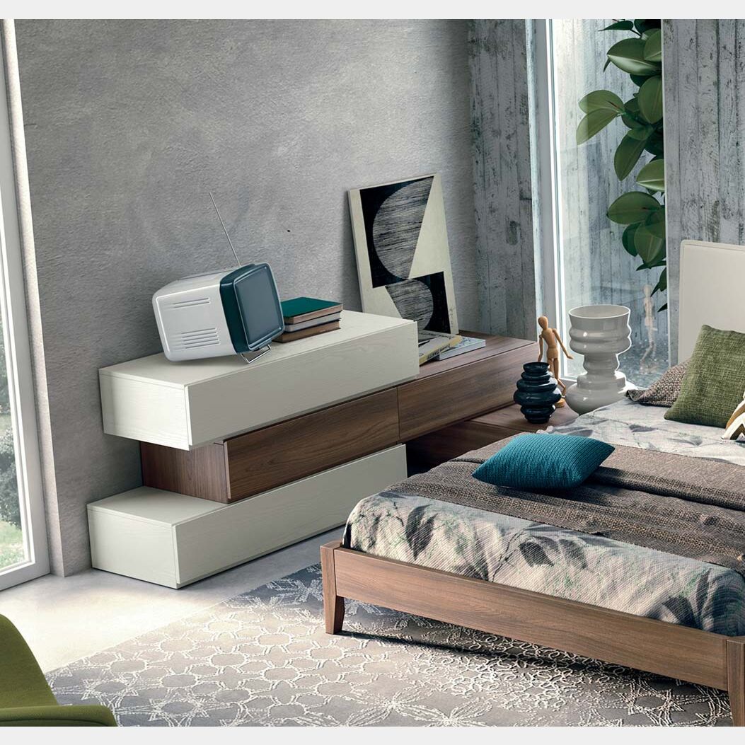 Il comò si adatta a tutte le zone notte, in particolare alle più moderne e innovative, grazie al contrasto dei due colori rende l'ambiente accogliente ed elegante.