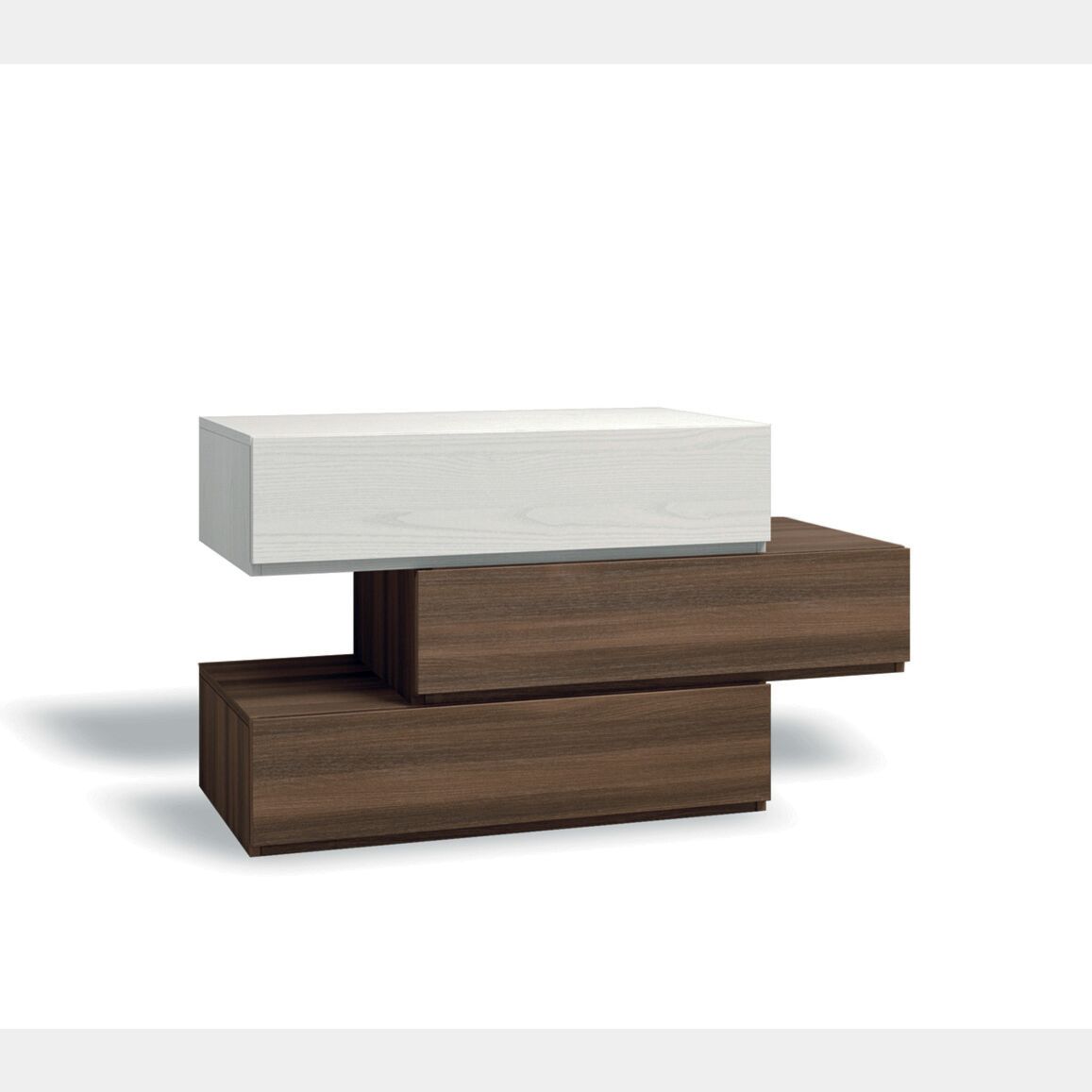 Comò particolare stretto con 3 cassetti di alta qualità in finitura Frassinato bianco e Quercia brown