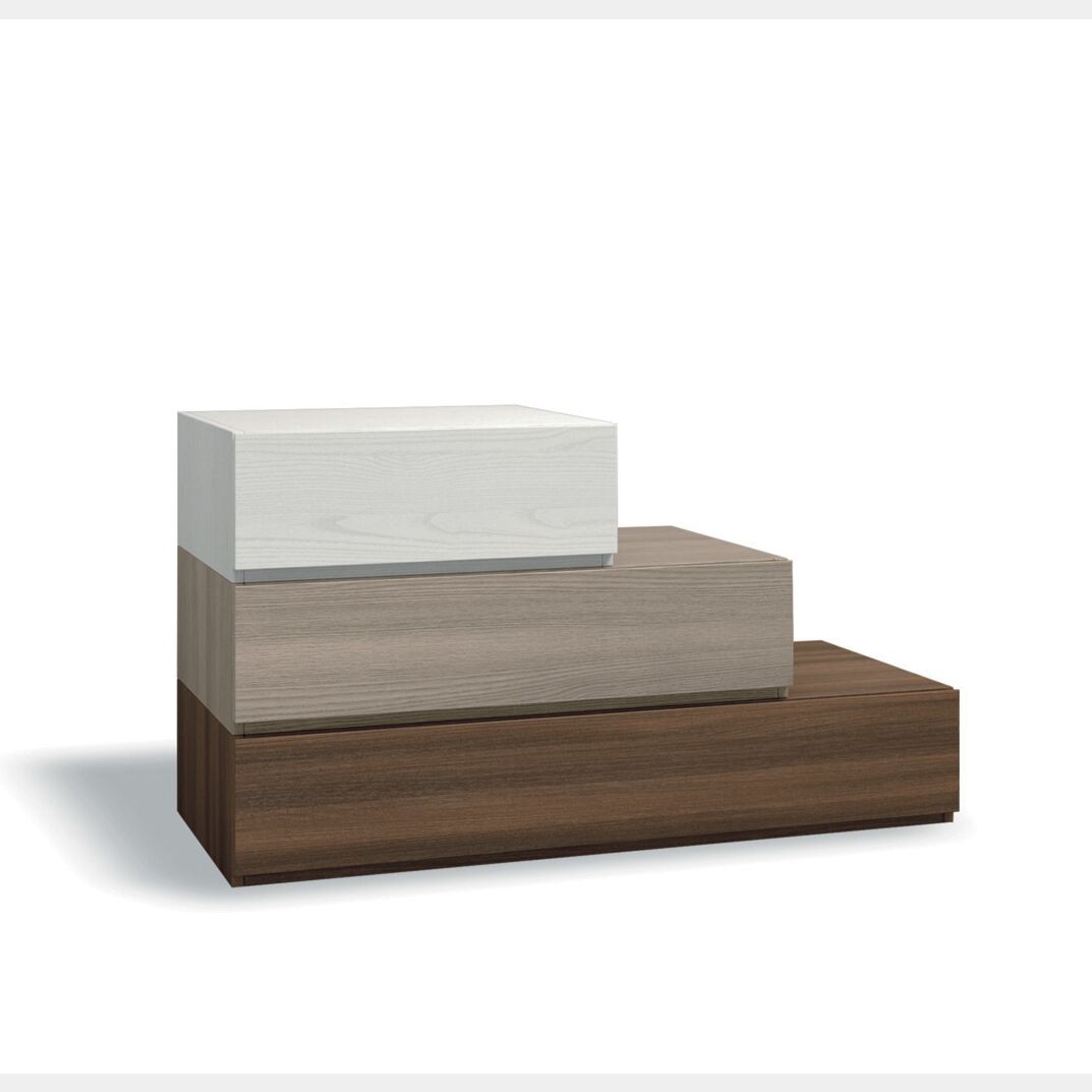 Il comodino, grazie all'accostamento delle finiture frassinato bianco, olmo e quercia brown risulta originale e adattabile ad ogni zona notte. E' possibile personalizzare le finiture attraverso il menù a tendina.