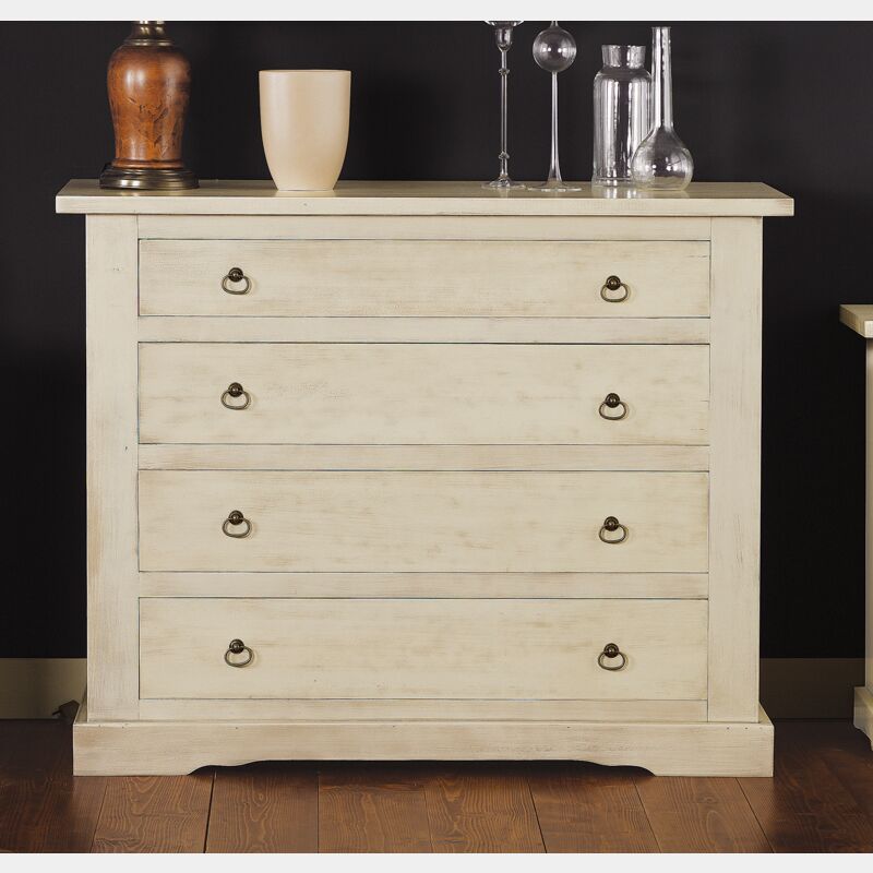Comò patinato arte povera, finitura Laccato avorio patinato