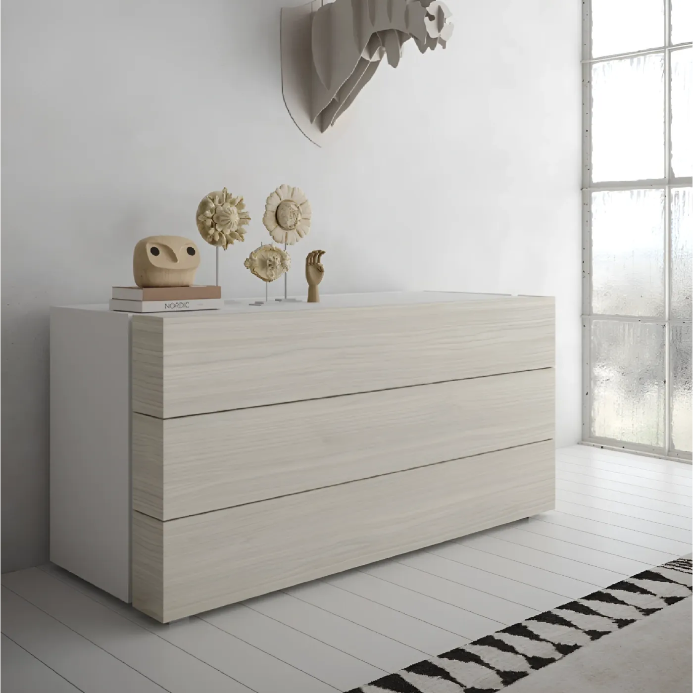 Il comò ha un'aria davvero moderna e "easy"! È il classico mobile che sta bene un po' dappertutto, dalla camera da letto al corridoio, perché ha un design pulito e accogliente.