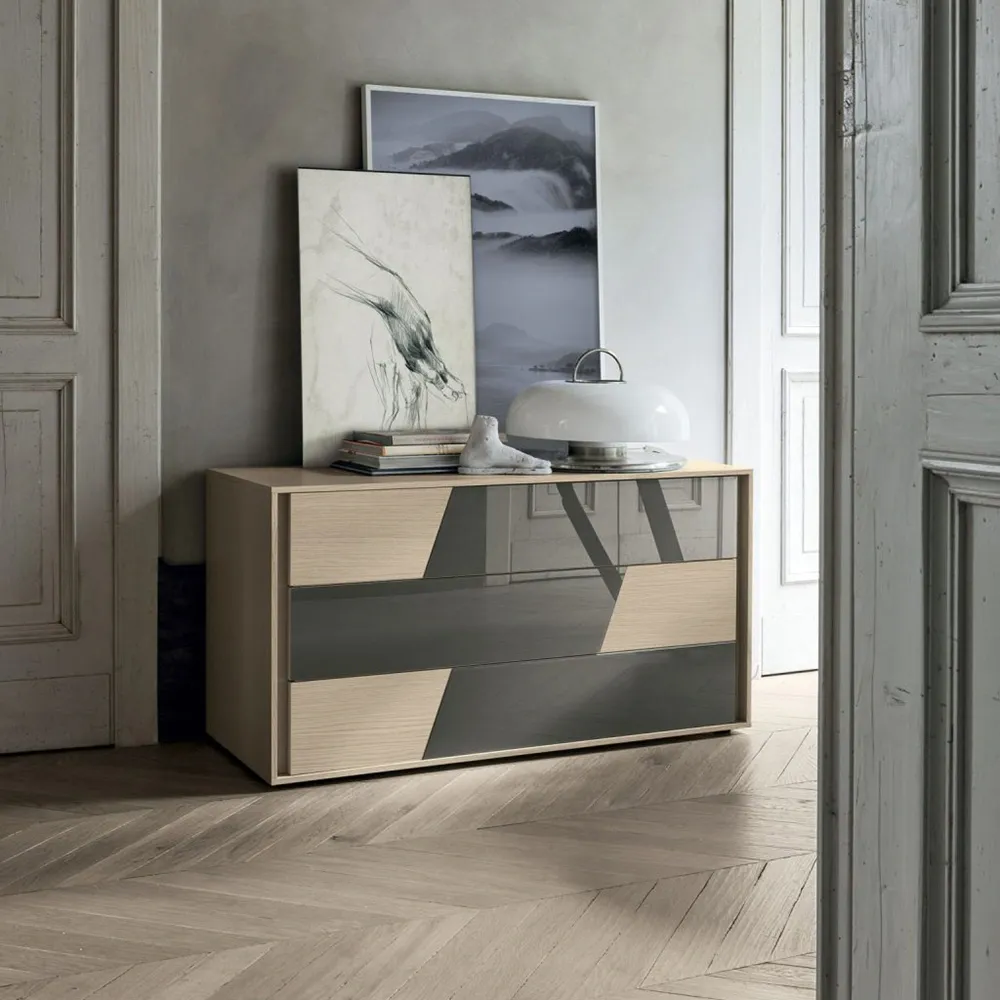 Comò Tomasella Kross, Rovere sabbia e vetro Smoke