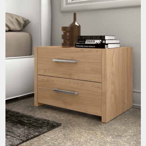 Comodini Noce biondo a 2 cassetti, maniglie in metallo