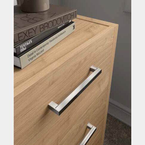 La finitura proposta è Noce biondo ma grazie ad un ampio campionario è possibile personalizzare la coppia di comodini per adattarla al meglio alla propria camera da letto. Sono disponibili finiture materiche oppure laccate opache o lucide.