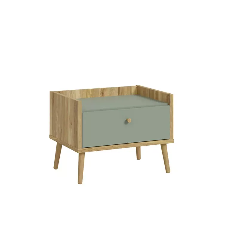 Comodino 1 cassetto in finitura Agave, con piedini in legno massello