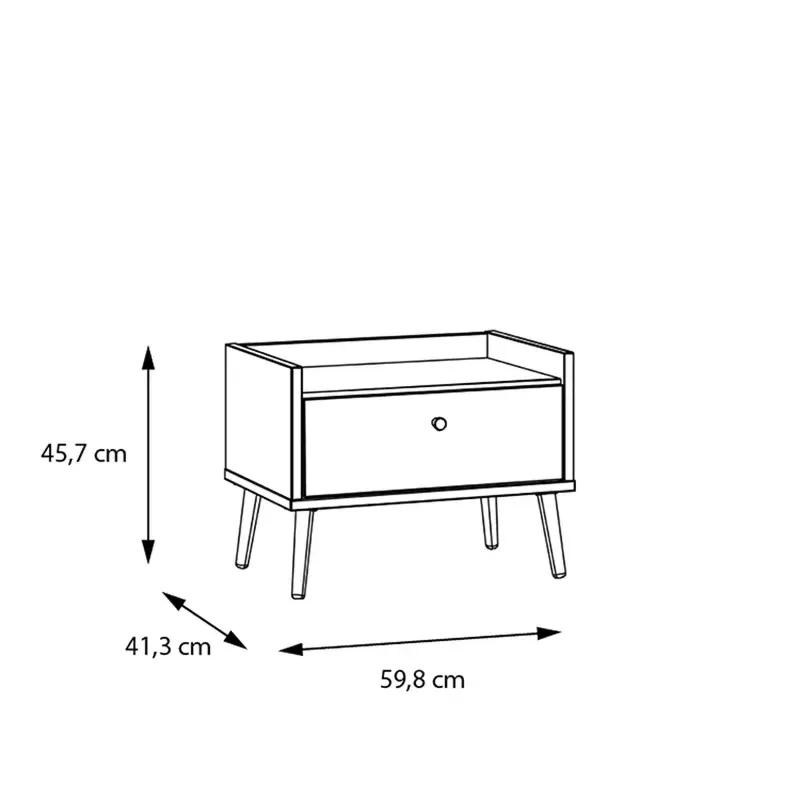 Calde finiture caratterizzano il comodino ad un cassetto, offrendo un complemento d'arredo adatto a camere matrimoniali moderne, minimal e dallo stile nordico o per camerette di ragazzi.