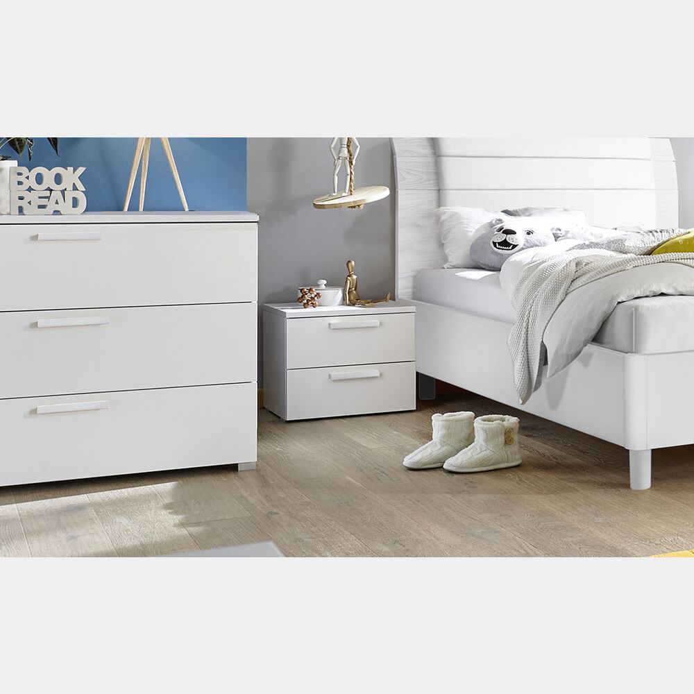 Comodino 2 cassetti con maniglia in legno biancoE' un prodotto made in Italy di ottima qualità.
