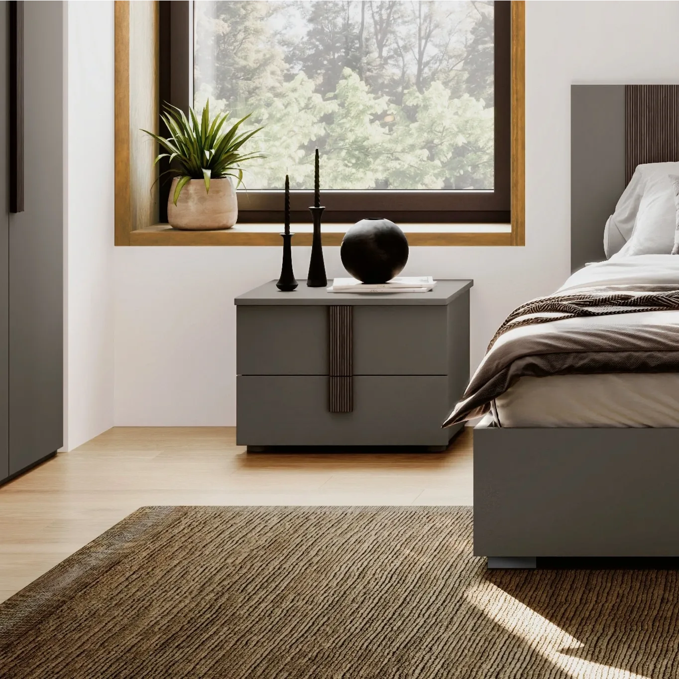 Comodino 2 cassetti, Grigio cenere con maniglia cannettata grigia, L.55