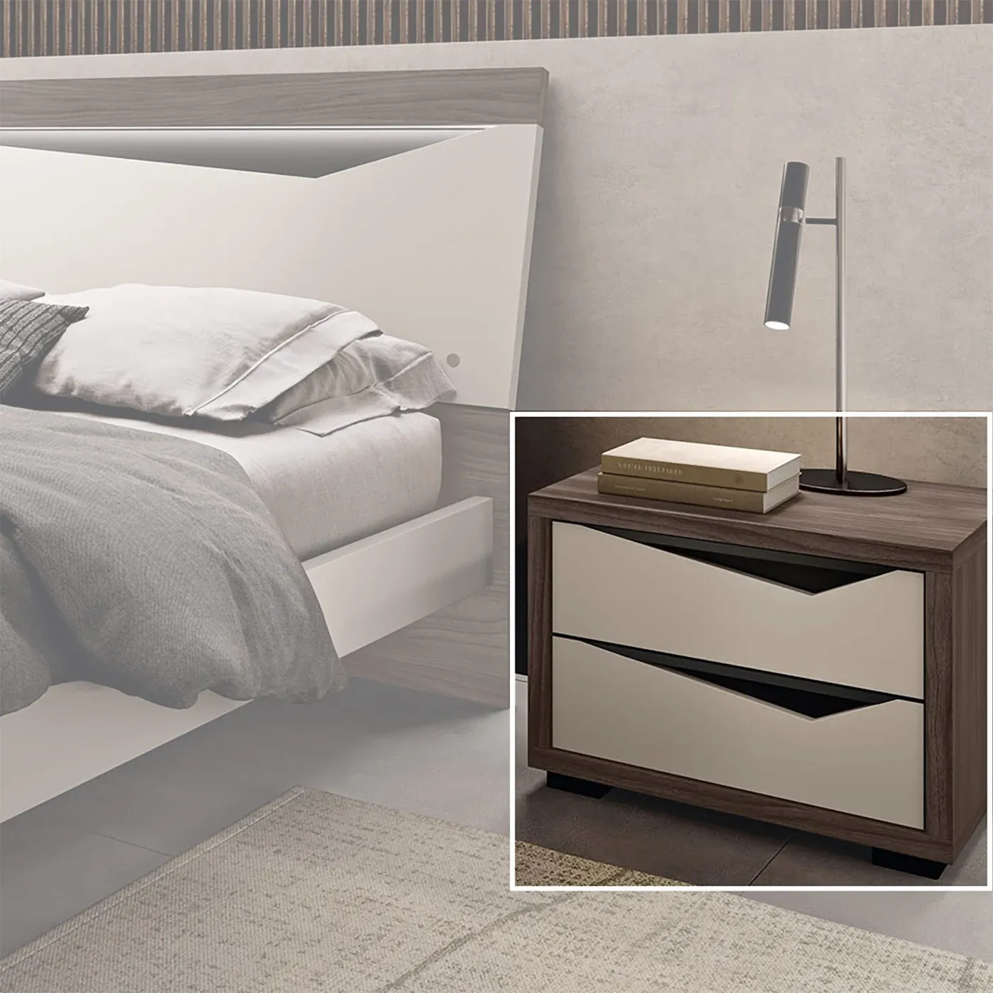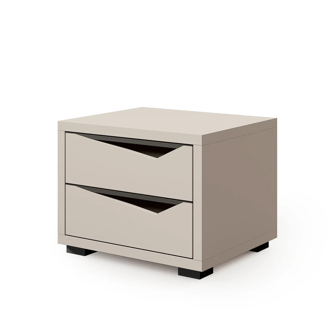 Questa scelta non è solo estetica, ma anche pratica: le maniglie "scompaiono" nel design, mantenendo le linee pulite e minimaliste del comodino, ma offrendo al tempo stesso una presa comoda e agevole per aprire i cassetti.
