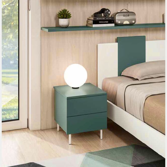 Il Comodino moderno a 2 cassetti per la zona notte è ideale per arredare la cameretta del tuo bambino, perché unisce una finitura colorata come il Verde Salvia e delle linee moderne che porteranno eleganza nella stanza.