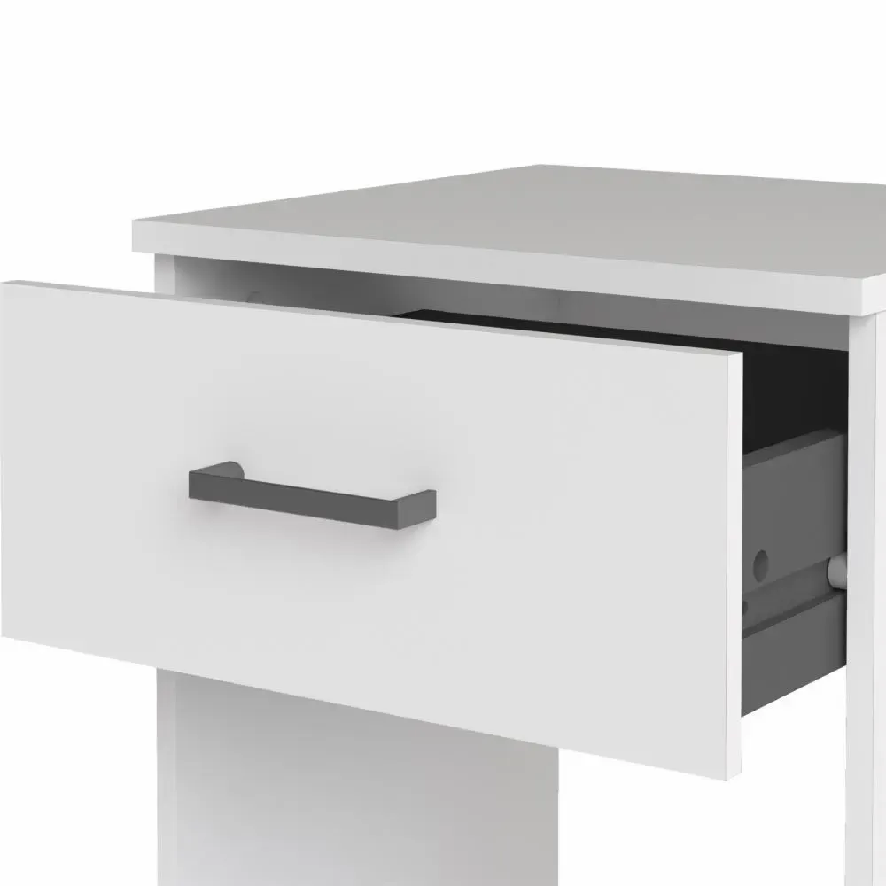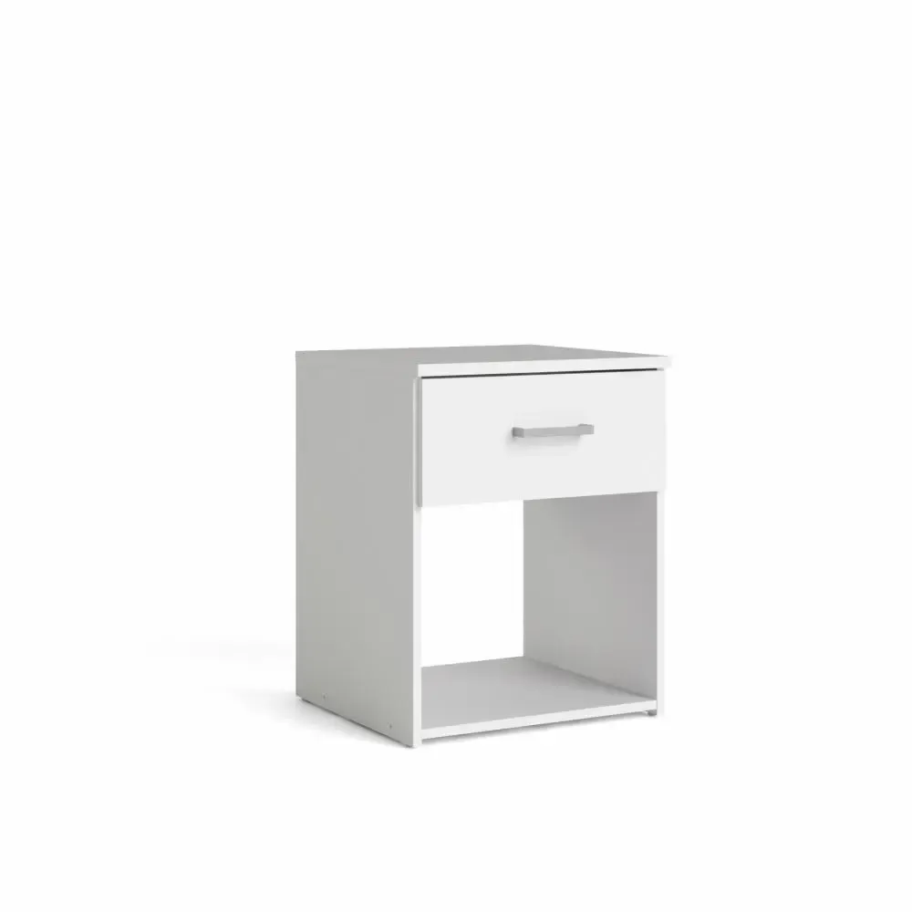 Comodino colore Bianco economico. Si può inserire in una cameretta o in una camera da letto per rendere il vostro arredamento più moderno.