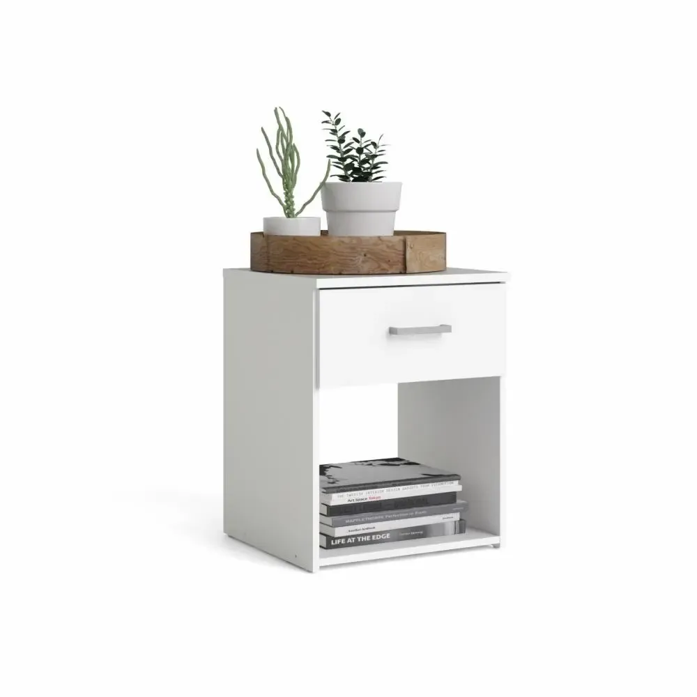 Nuovissimo comodino salvaspazio per le vostre camere da letto o per le vostre camerette color Bianco. Il mobiletto presenta un utile vano a giorno che garantisce un rapido accesso alle vostre riviste, libri o giornali ed è costituito anche da un cassetto in cui è possibile riporre i vostri oggetti in ordine.