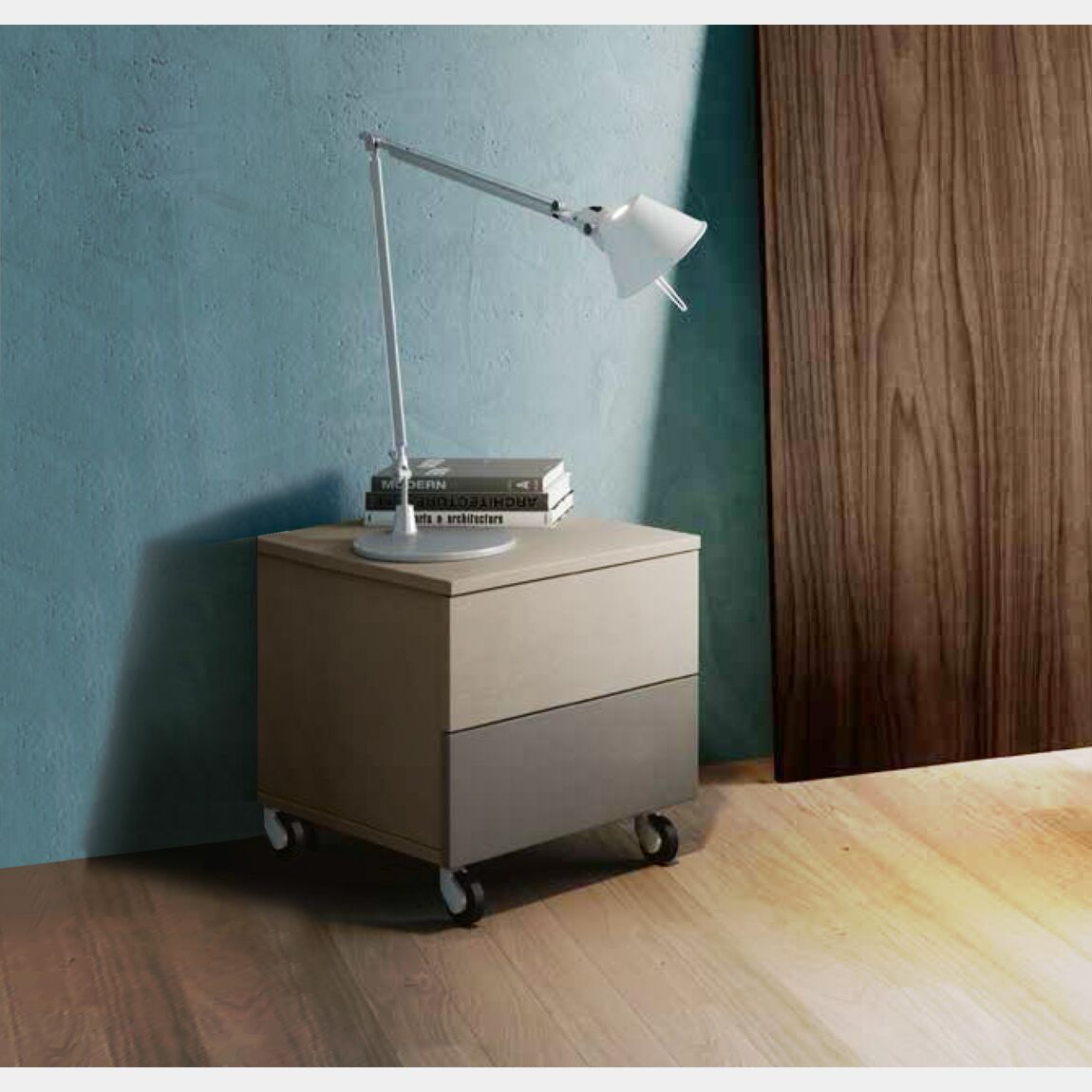 Comodino bicolor 2 cassetti con ruote, Argilla e Grigio cenere