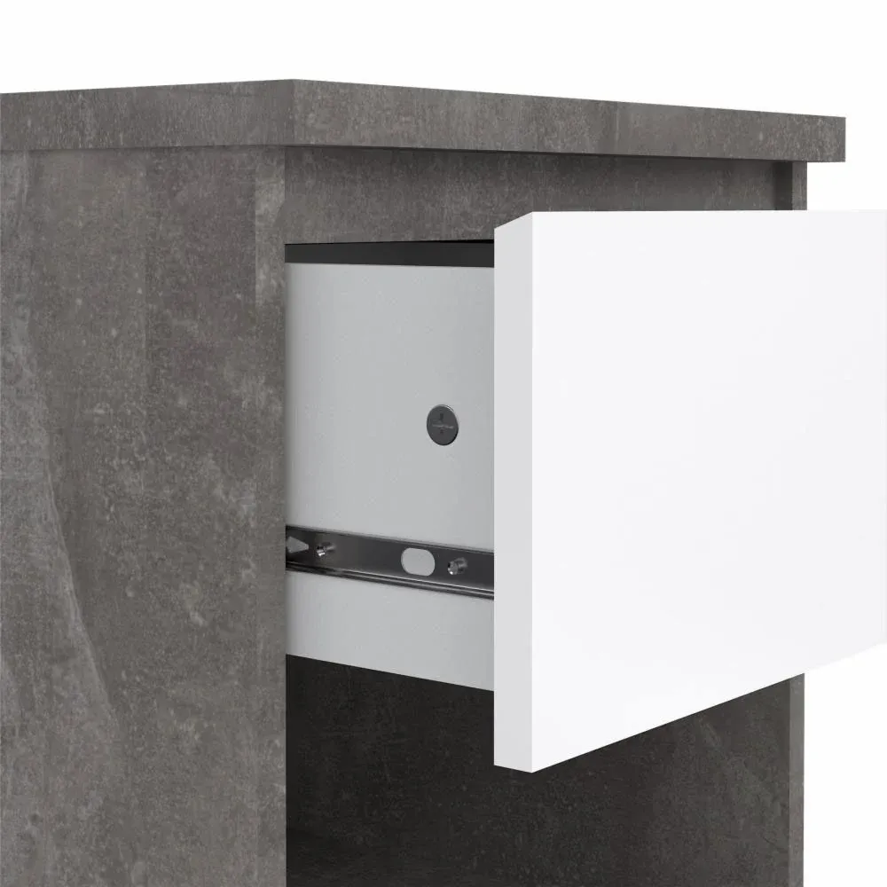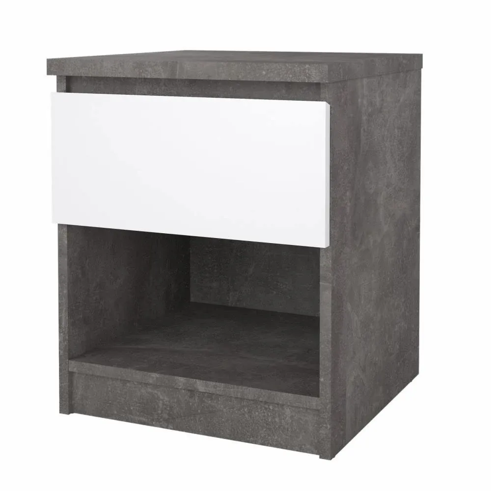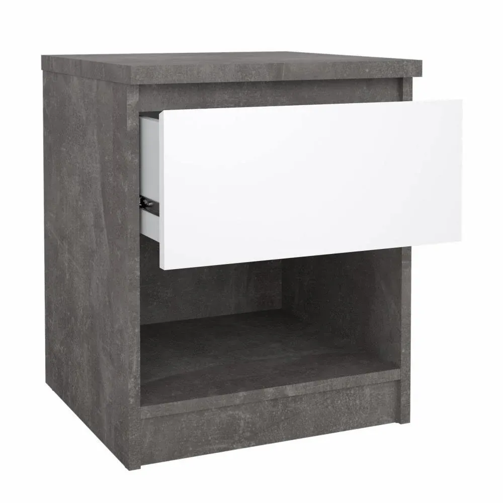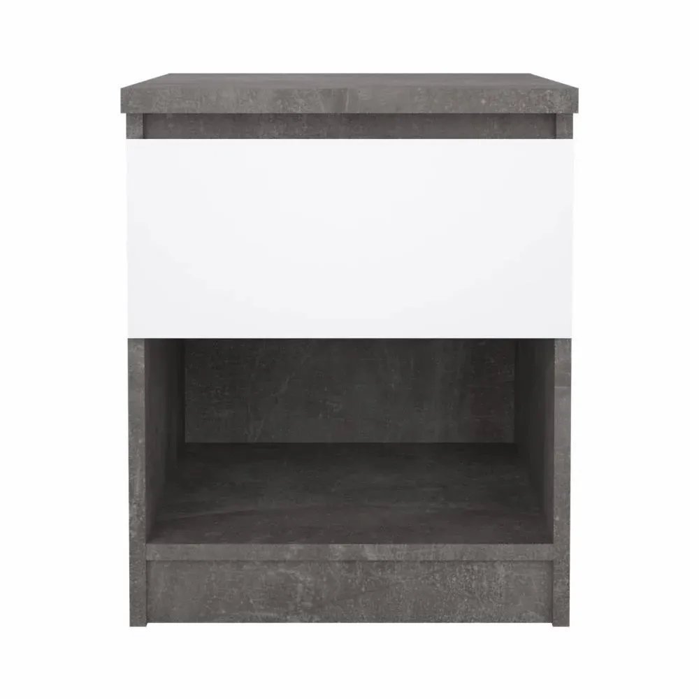 Comodino colore Calcestruzzo e Bianco lucido con un cassetto
