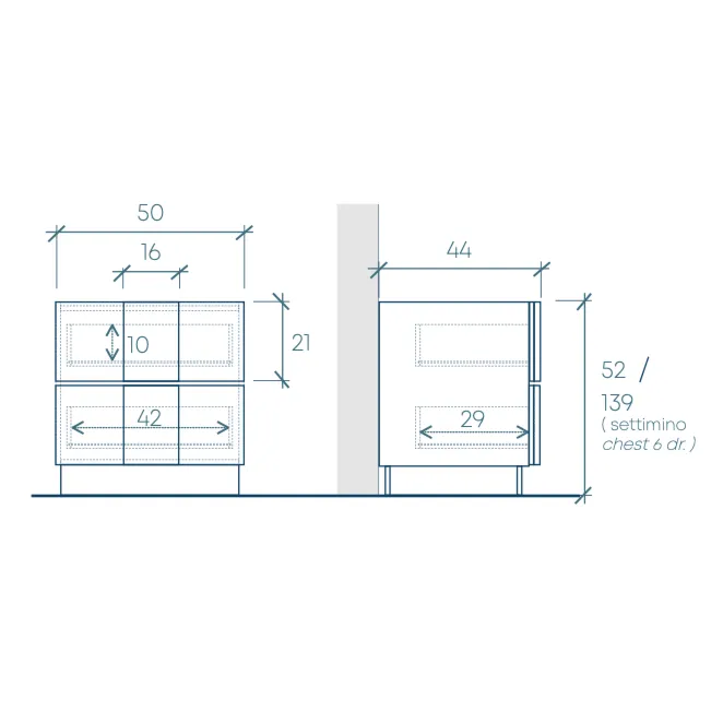 • Capienza cassetto: L.42 H.10 P.29 cm